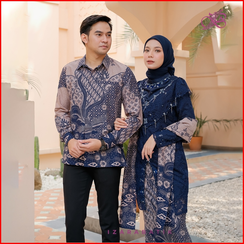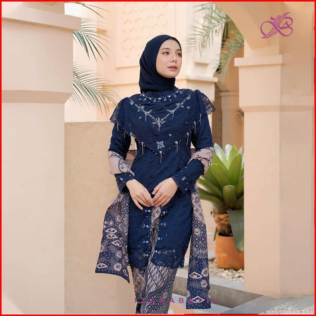 Izarabatik - Zivana Navy Set Kebaya Modern Couple Wisuda Lamaran Full Payet Tunangan Kondangan Bridesmaid