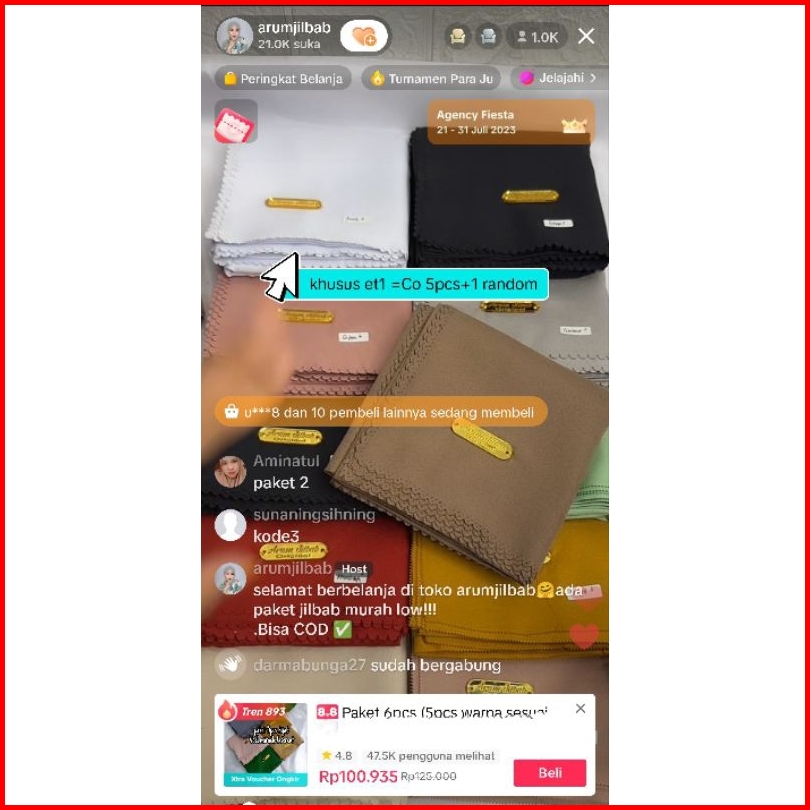 Paket Hijab Isi 5 Pcs Segiempat Voal Miracle Label Arumjilbab Standart Polos
