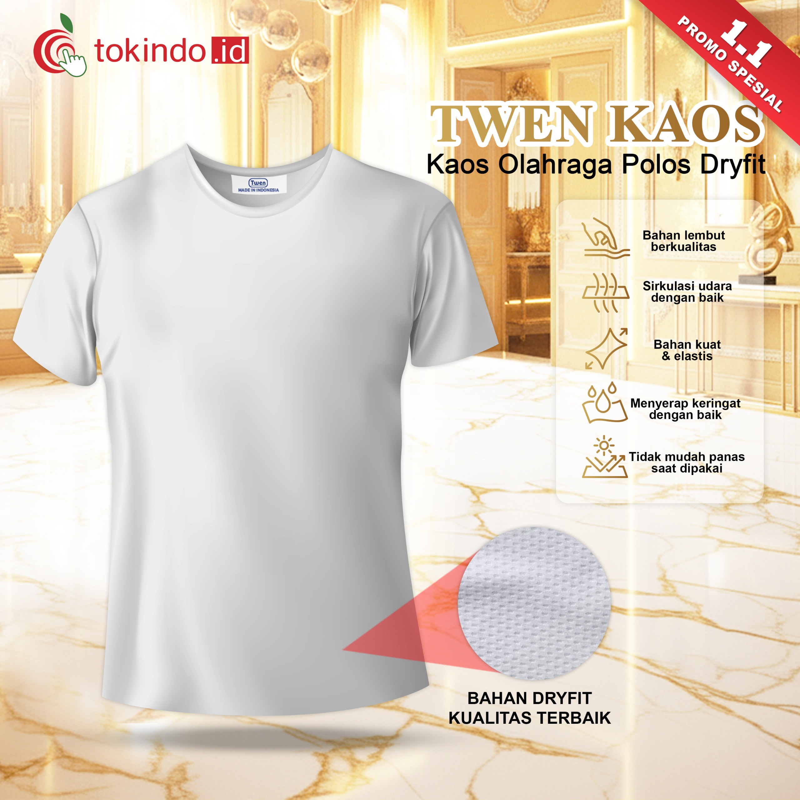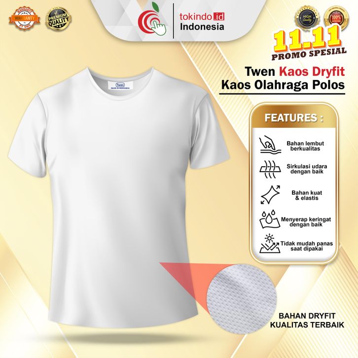 TWEN Kaos Olahraga Polos Running Lari Dry Fit Sport Jersey Pakaian Gym Fitness Lengan Pendek Pria