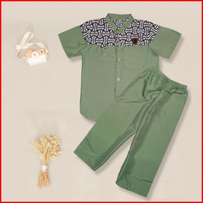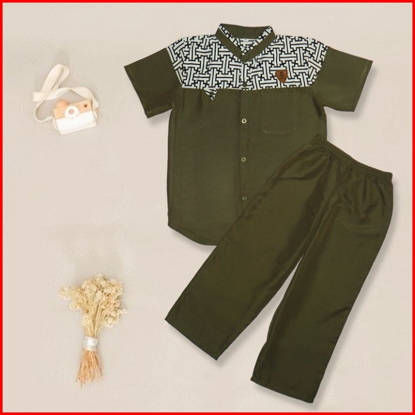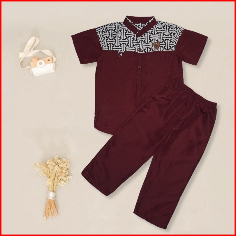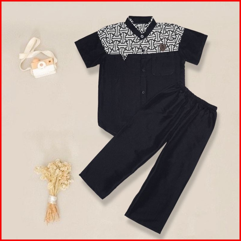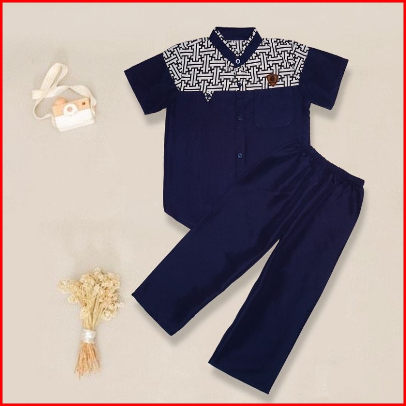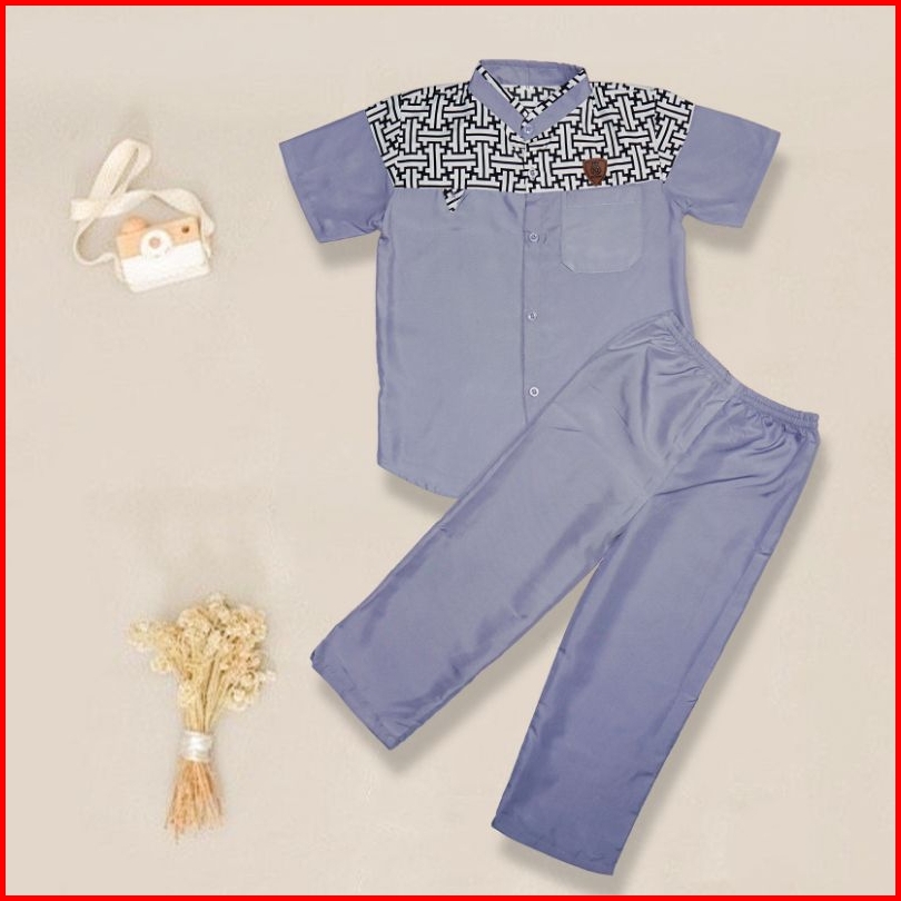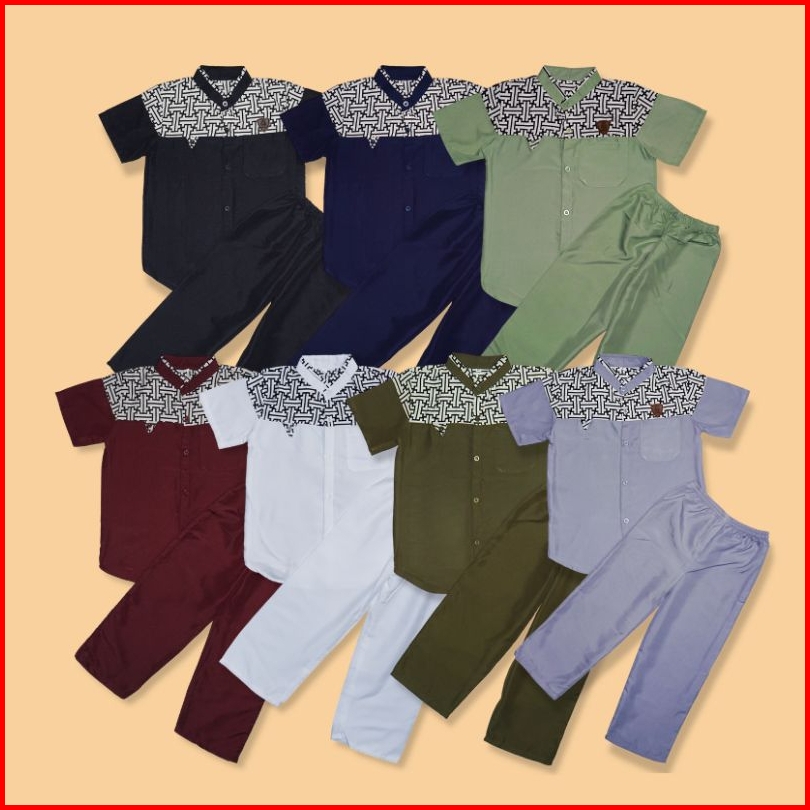 Setelan Baju Koko Anak Laki Laki Usia 3-10 Tahun Bahan Katun Baju Celana Anak Lengan Pendek