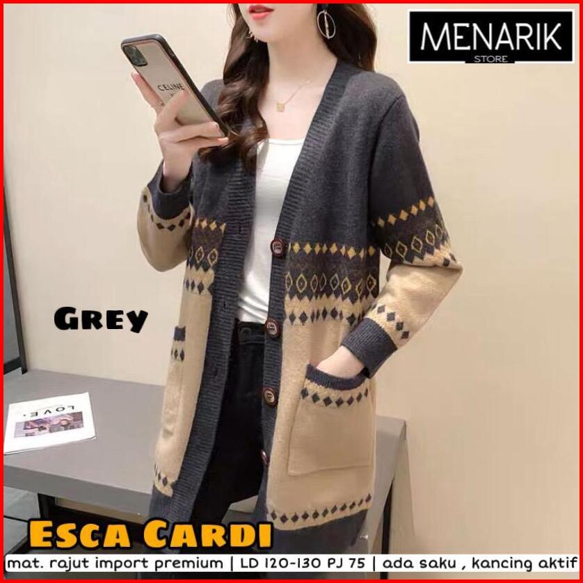 Restock Esca Cardigan Jumbo Outer Sweater Rajut Halus Tebal Ld 120 Pj 75