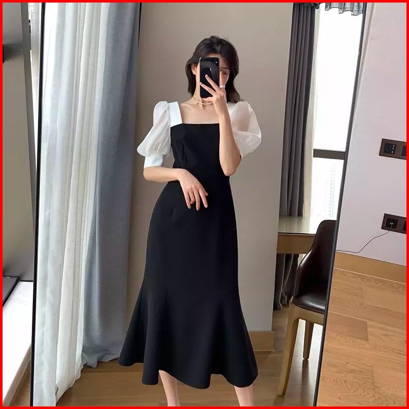 Toply Shop Dres Wanita Elegant Korean Dres Kombinasi