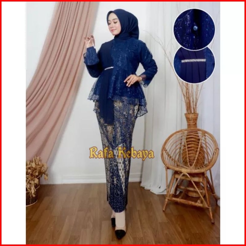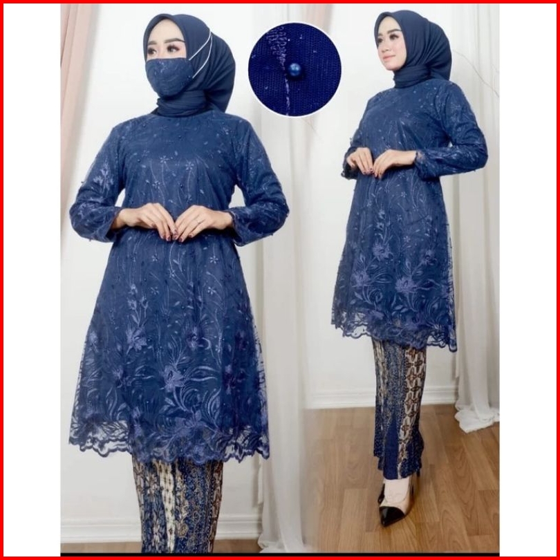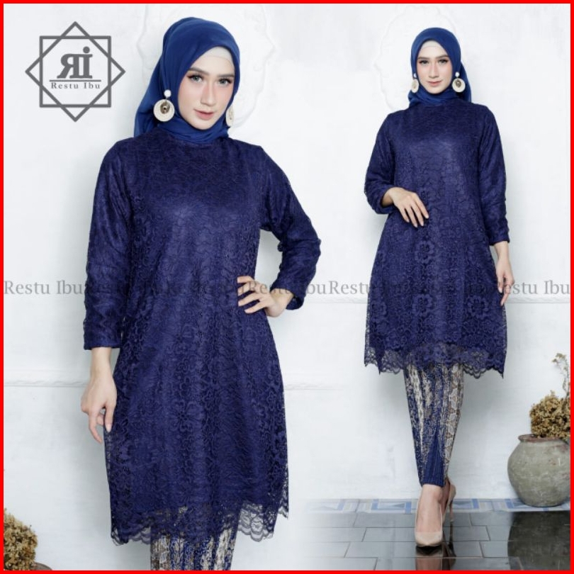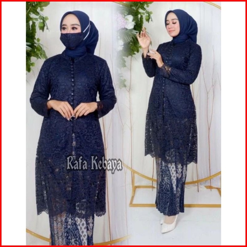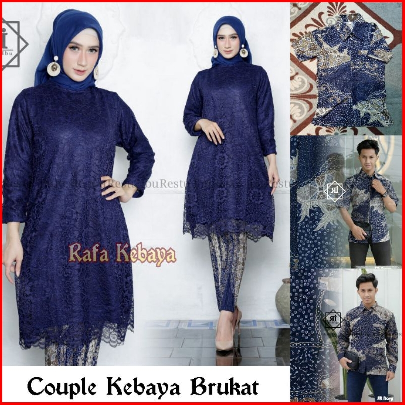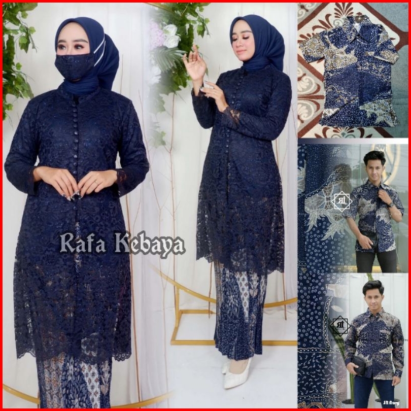 Couple Kebaya Brukat Kancing Depan Kebaya Busui Baju Batik Couple Motif Sr Navy