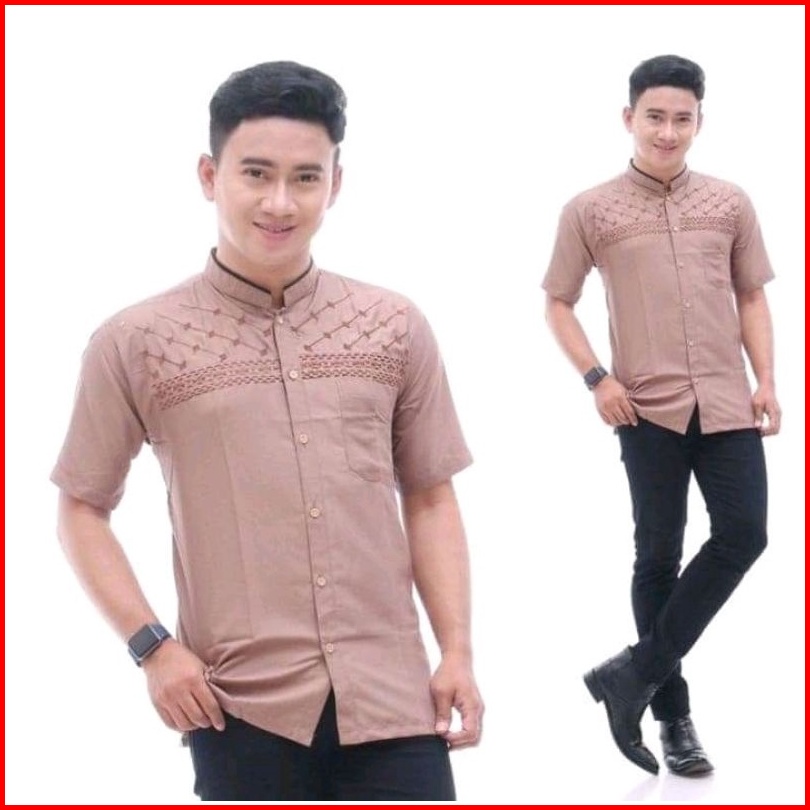 Baju Koko Pria Lengan Pendek Bordir Jasuke Kekinian Alkhalis