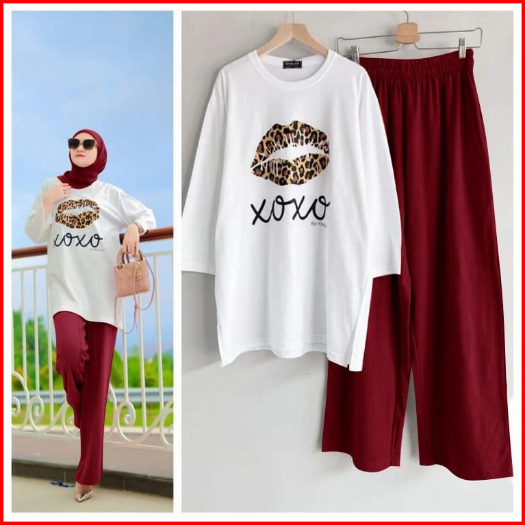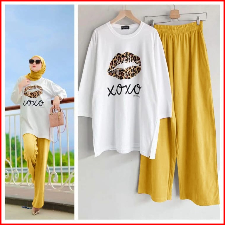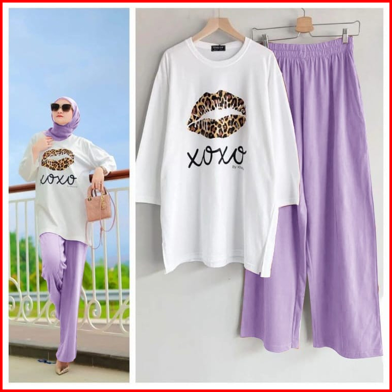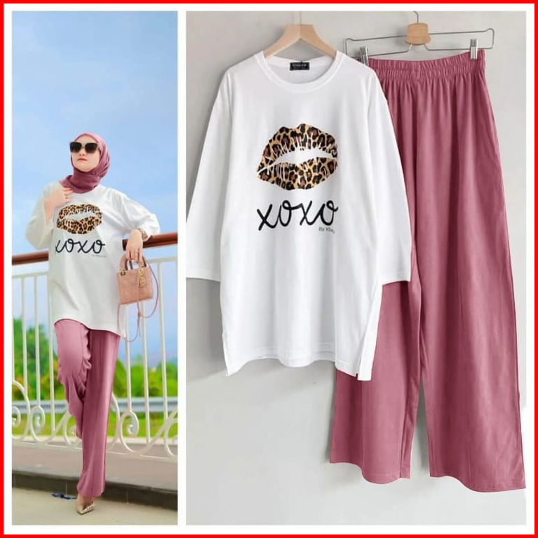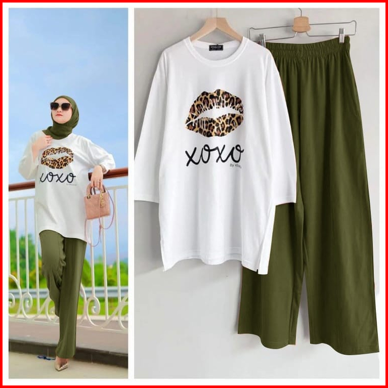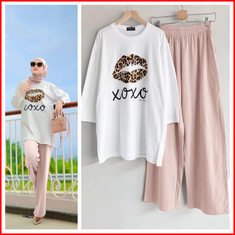 Setelan Tunik Wanita Xoxo Hijab Colaboration Bahan Babytery