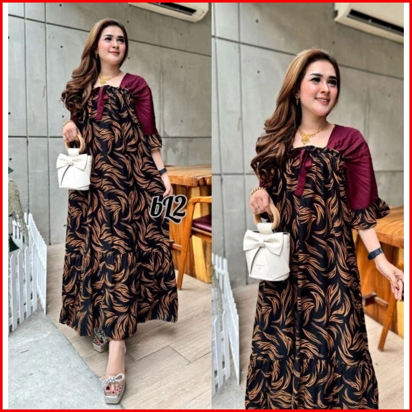 Daster Fuji Rayoon Kerut Dada Dres Lily Pom Pom Rempel Daster Pom Pom Motif Terbaru Dres Fuji Viral Rempel Bawah Dres Fu