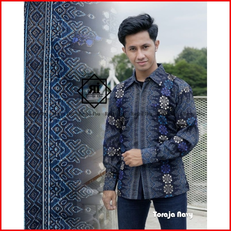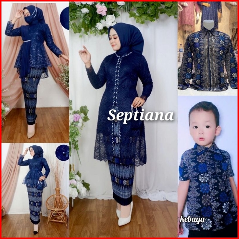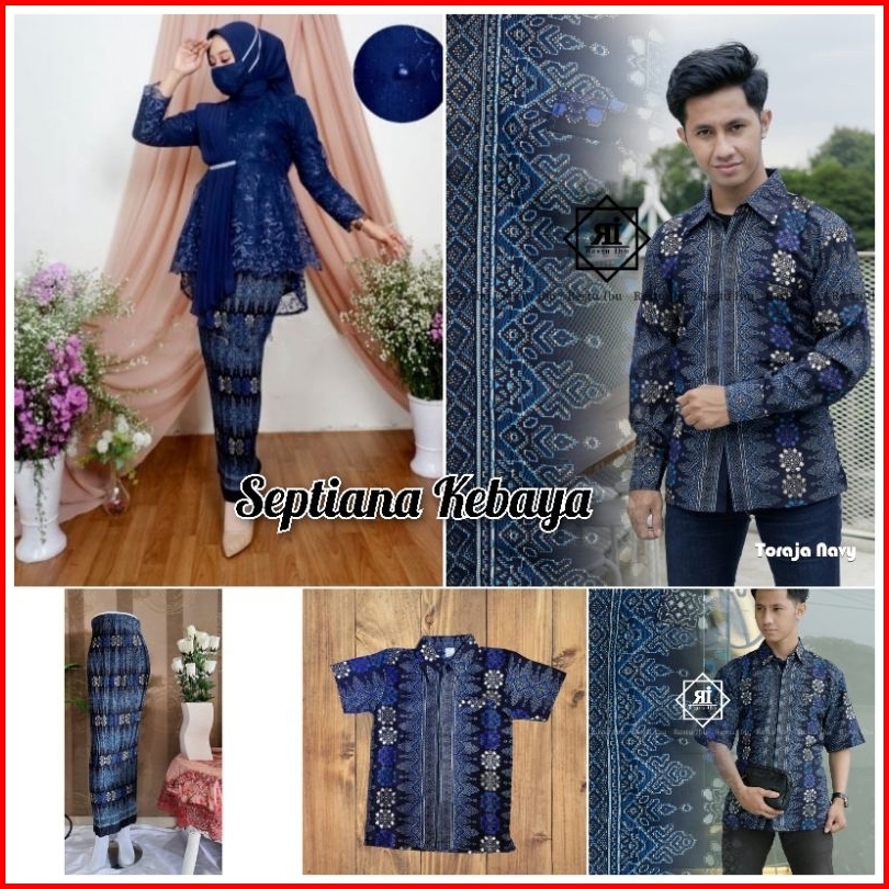Sk - Baju Kebaya Couple Ibu Besan Warna Navy Kebaya Modern Tunangan Couple Keluarga Kebaya Couple Batik Toraja Navy