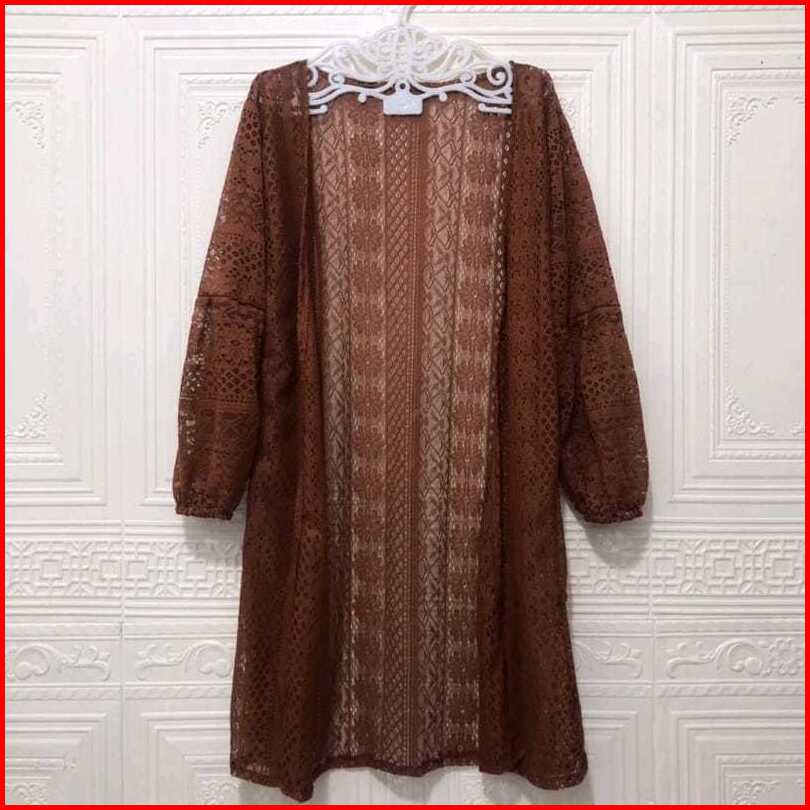 Terbaru Kardigan Wanita Outerwear Long Cardigan Brukat Outer Brukat Panjang Lengan Balon Baju Kondangan Wanita Terlaris