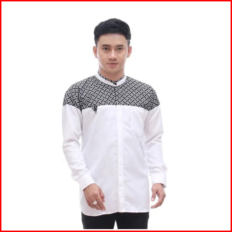 Baju Koko Putih Lengan Panjang Bordir Sawata Fashion