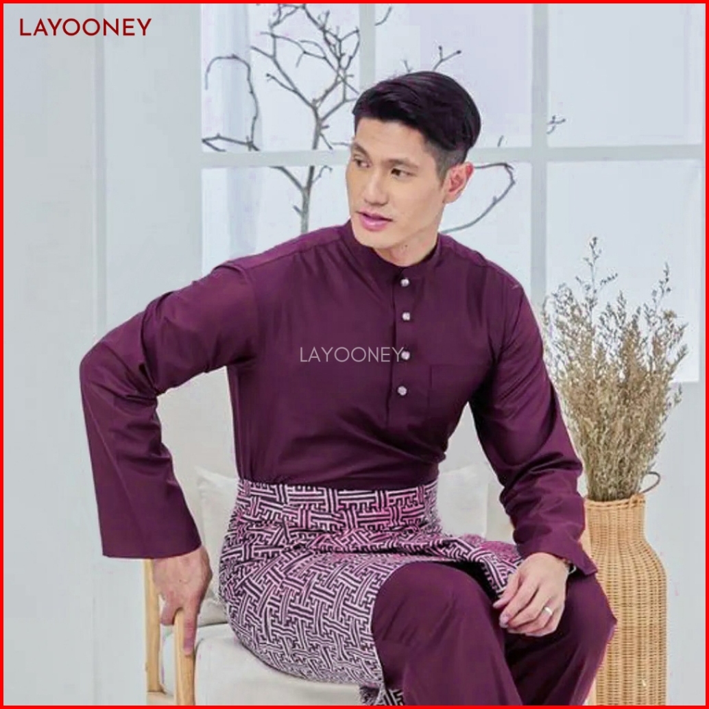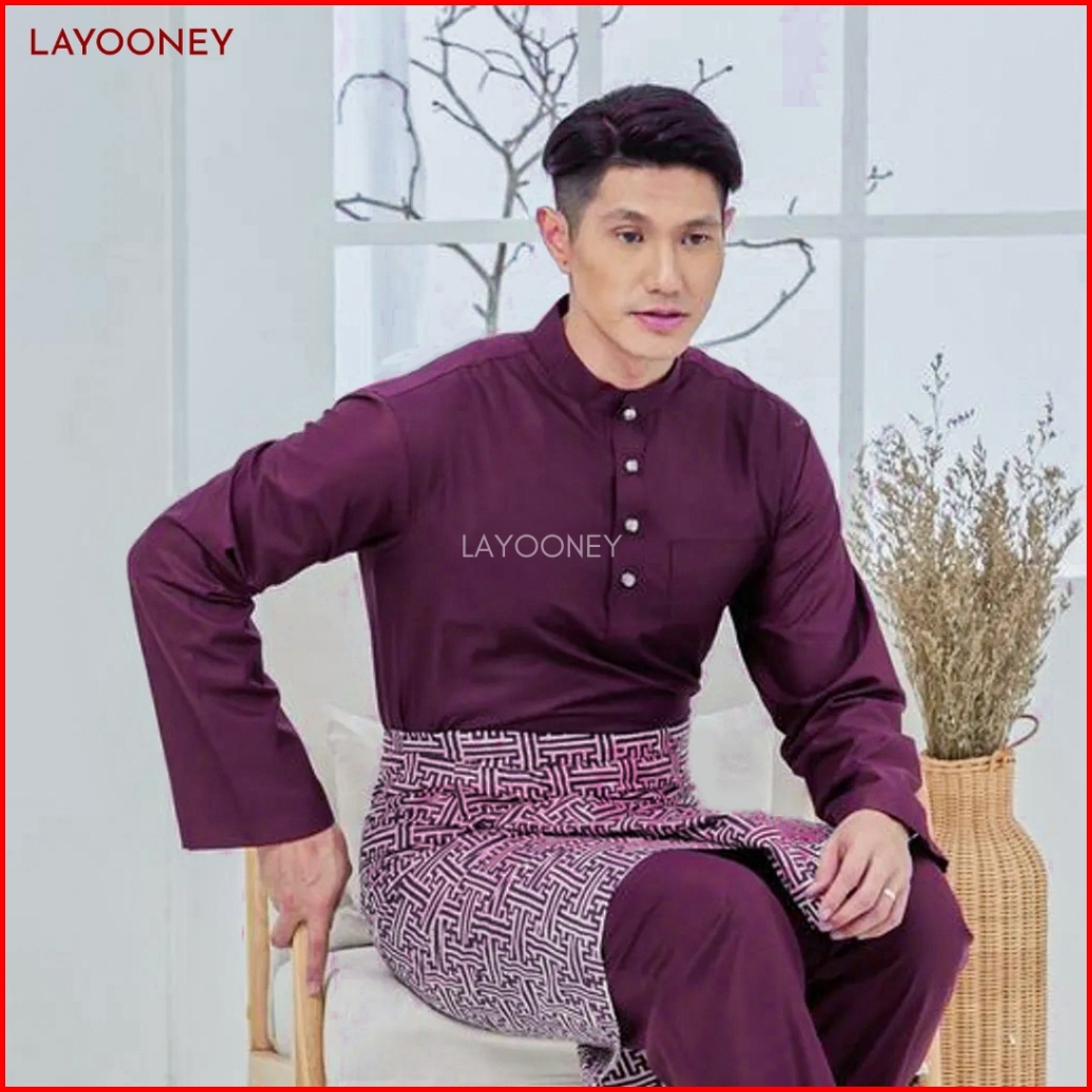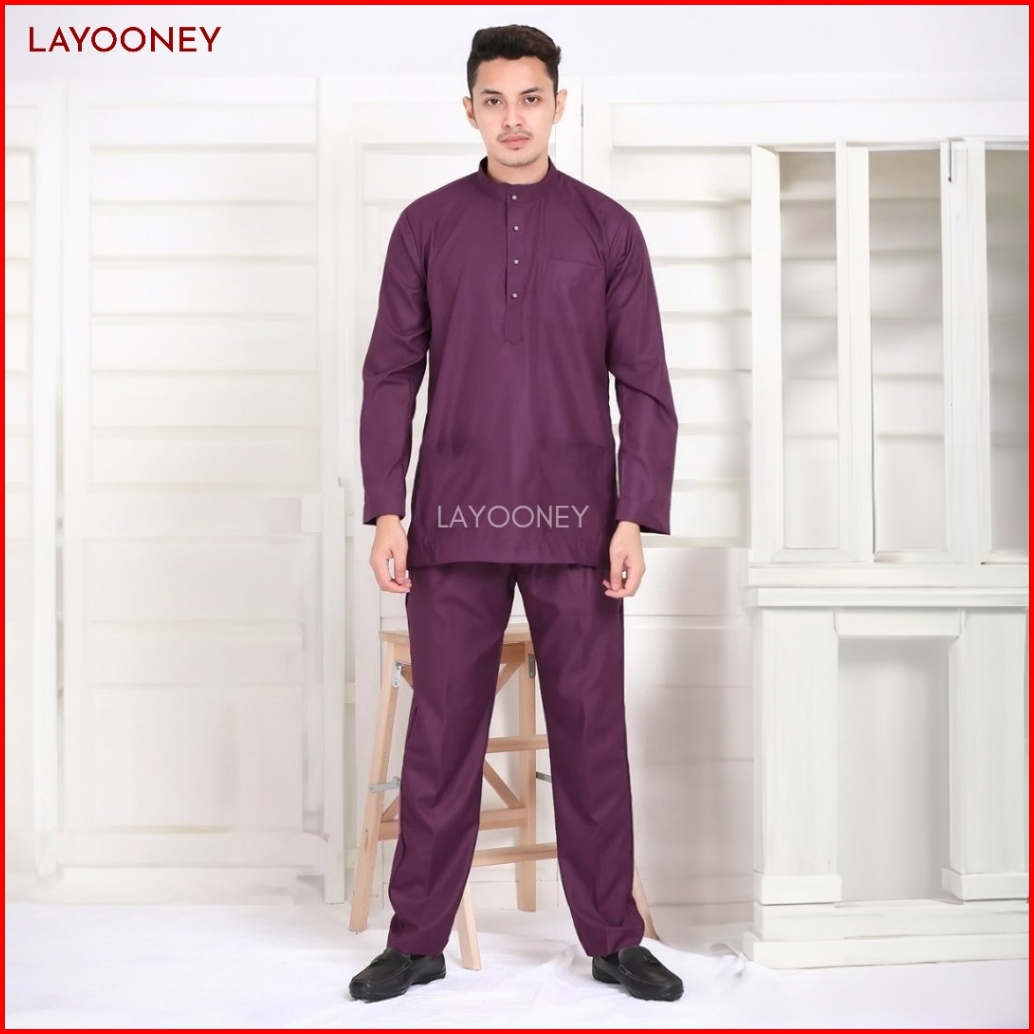 Setelan Baju Melayu Pria Teluk Belanga Bahan Katun Toyobo Pakaian Cekak Musang Koko Ungu Burgundy