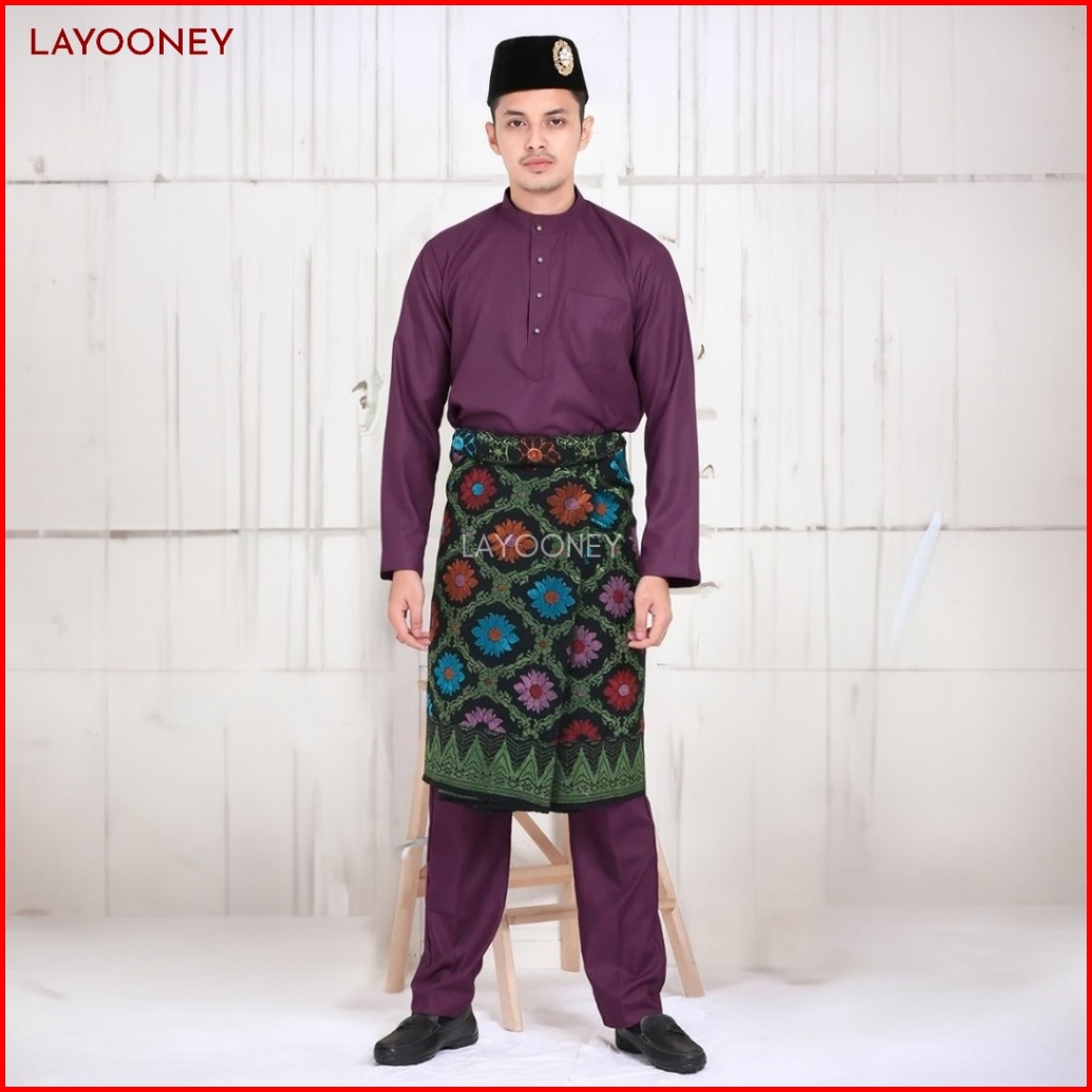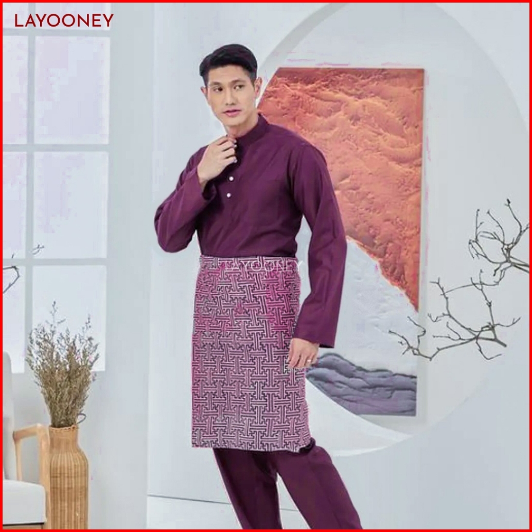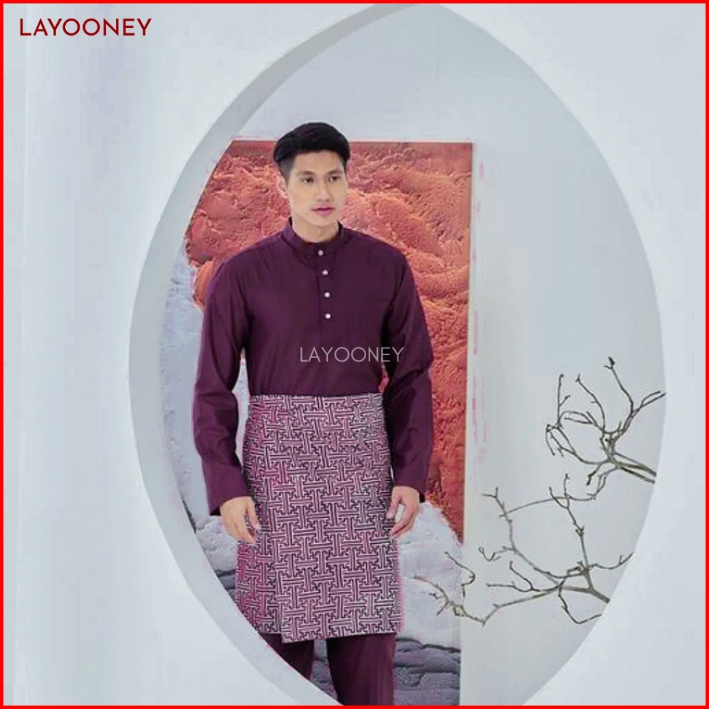 Setelan Baju Melayu Pria Teluk Belanga Bahan Katun Toyobo Pakaian Cekak Musang Koko Ungu Burgundy
