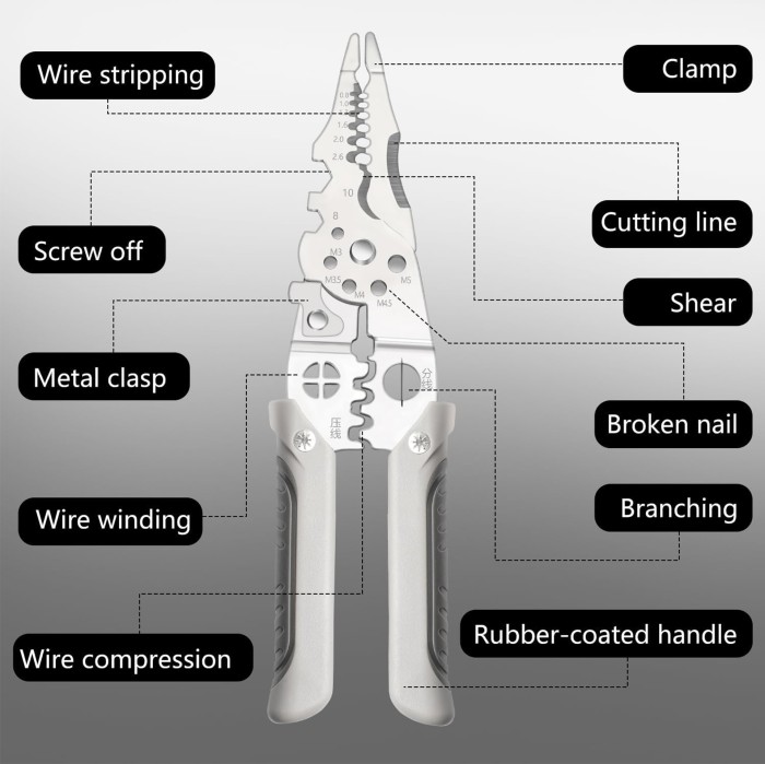 TANG DEKRUSTASI KUPAS POTONG LILIT BELAH CRIMPING SKUN BUKA BAUT KABEL LISTRIK 27 IN 1 MULTIFUNGSI WIRE STRIPPER