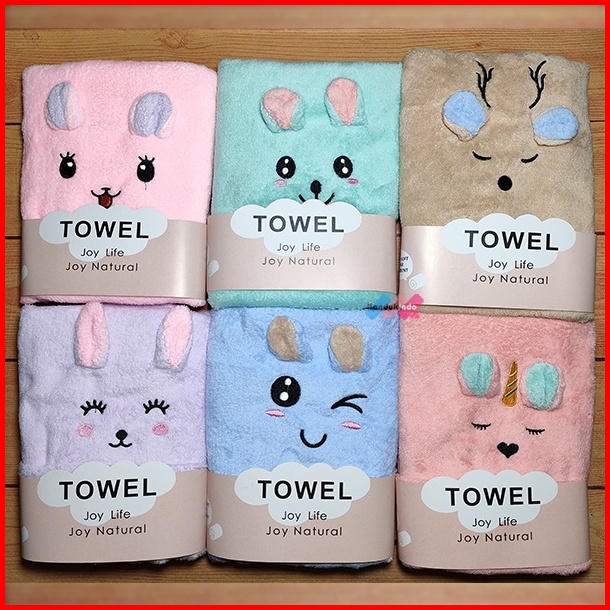 Handuk Mandi Anak Bayi Kuping Timbul Microfiber Lembut 50x100cm 70x140cm Daya Serap Tinggi