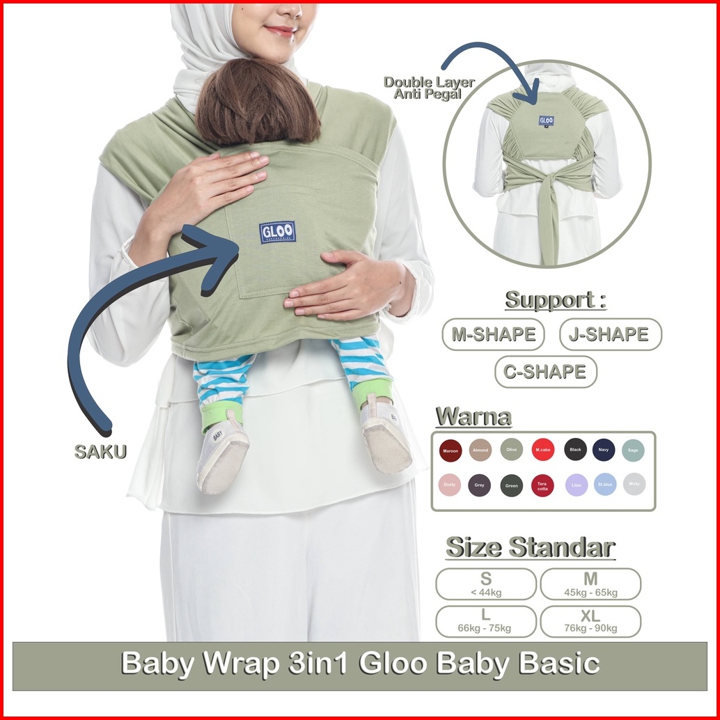 Gendongan Bayi Depan M Shape Baby Wrap 3in1 Geos Baby Premium With Sash Belt Gloo