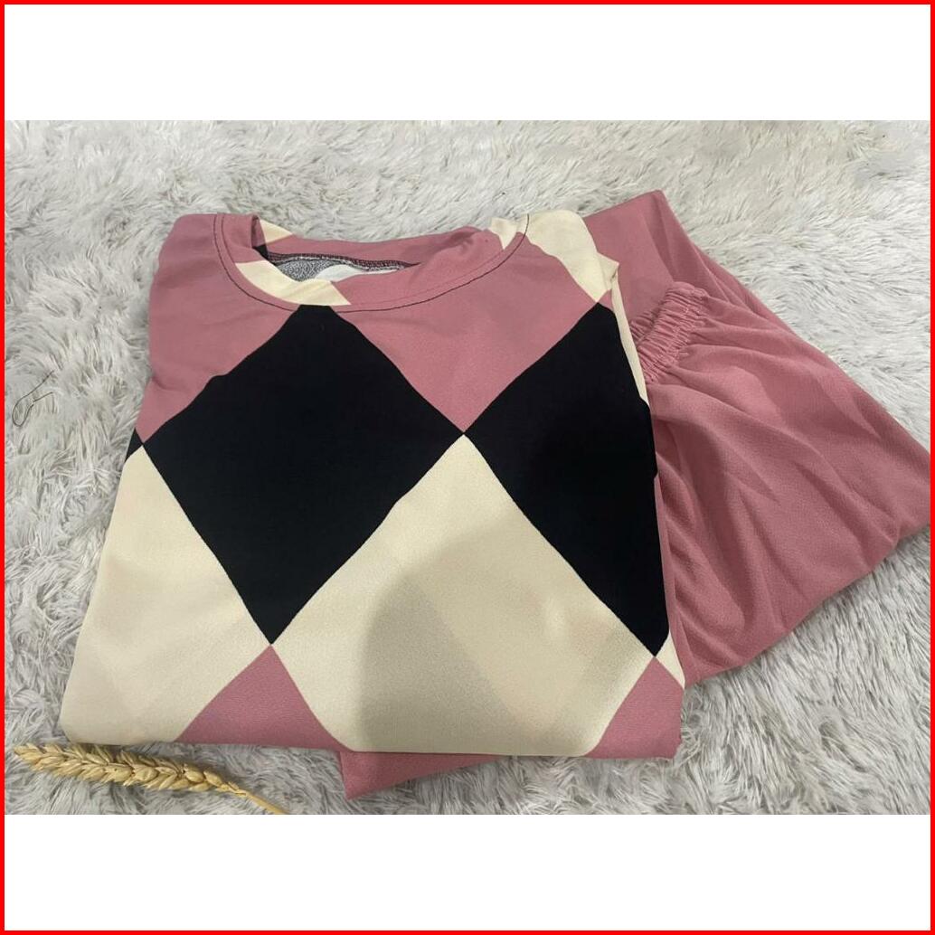 Setelan Jumbo Wanita Ld 120 Voxy Atasan Celana Motif Terbaru Kekinian Tranding