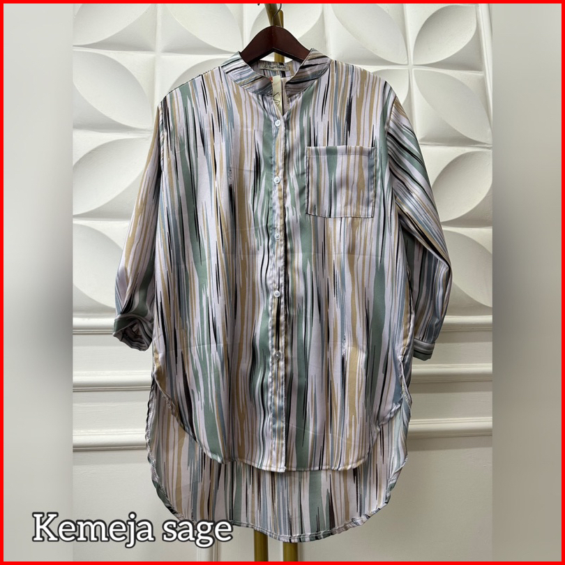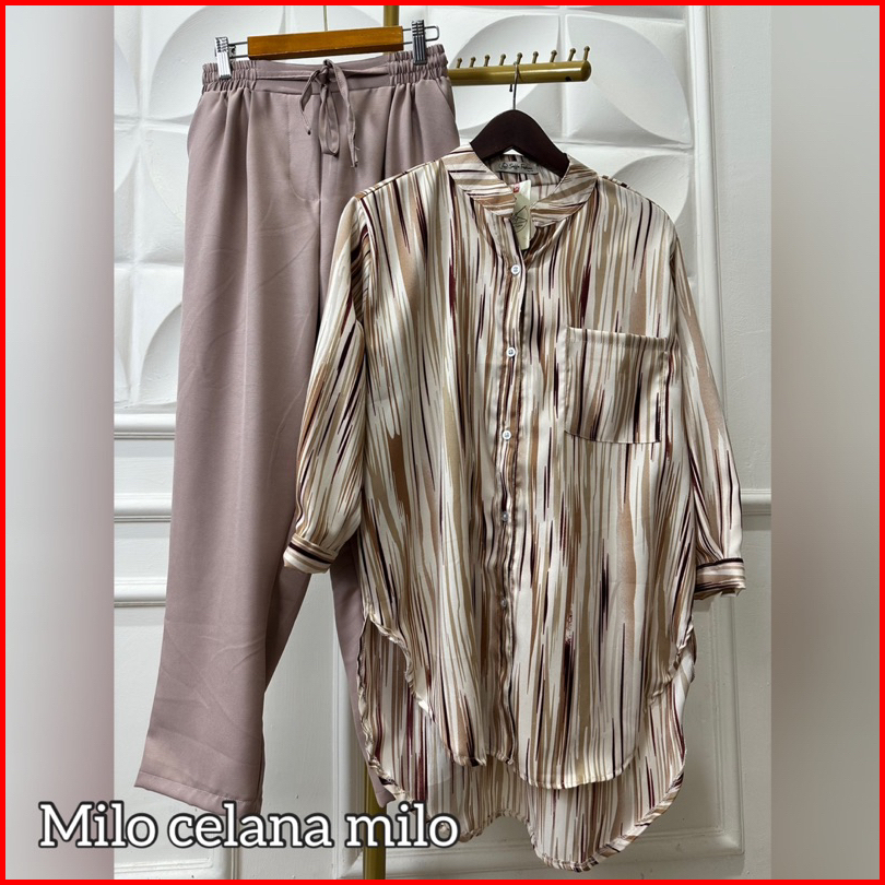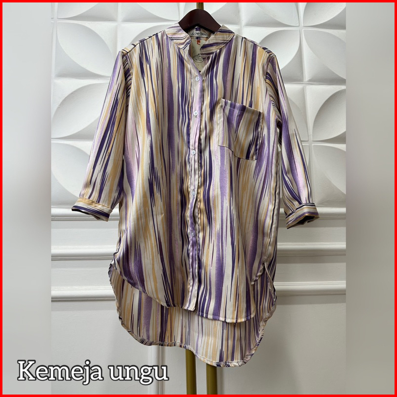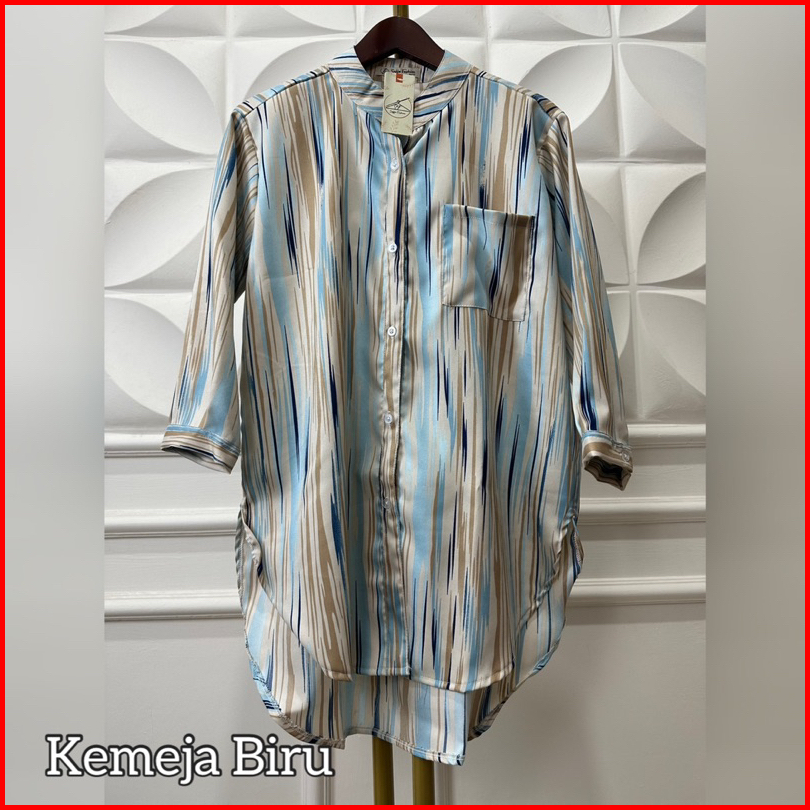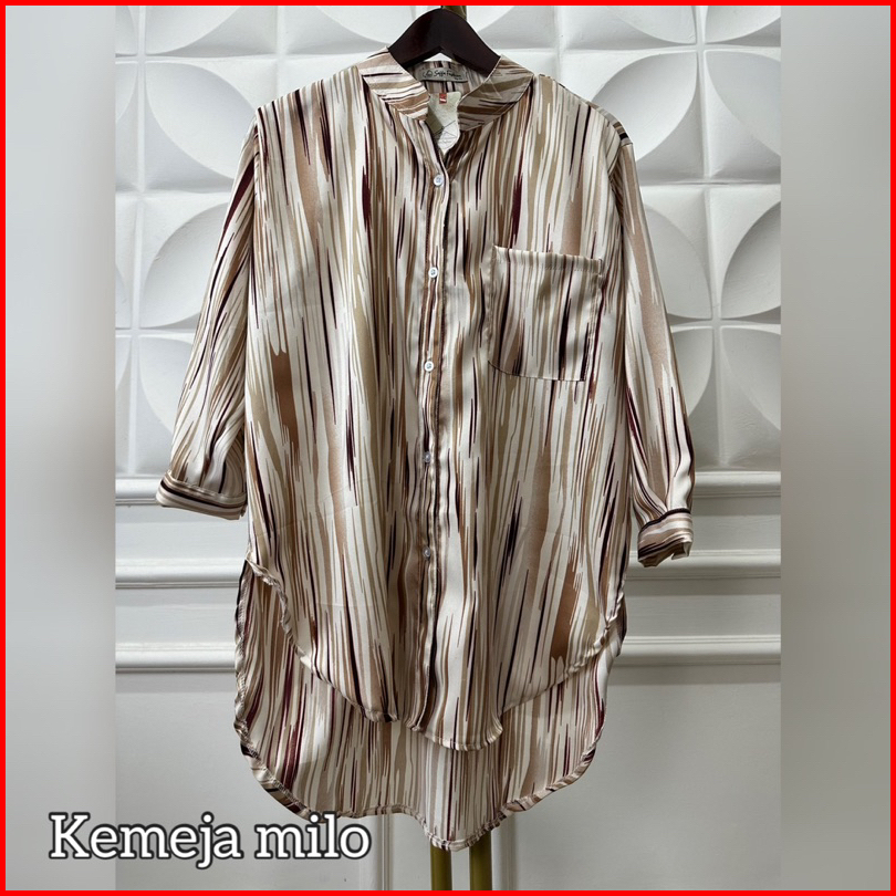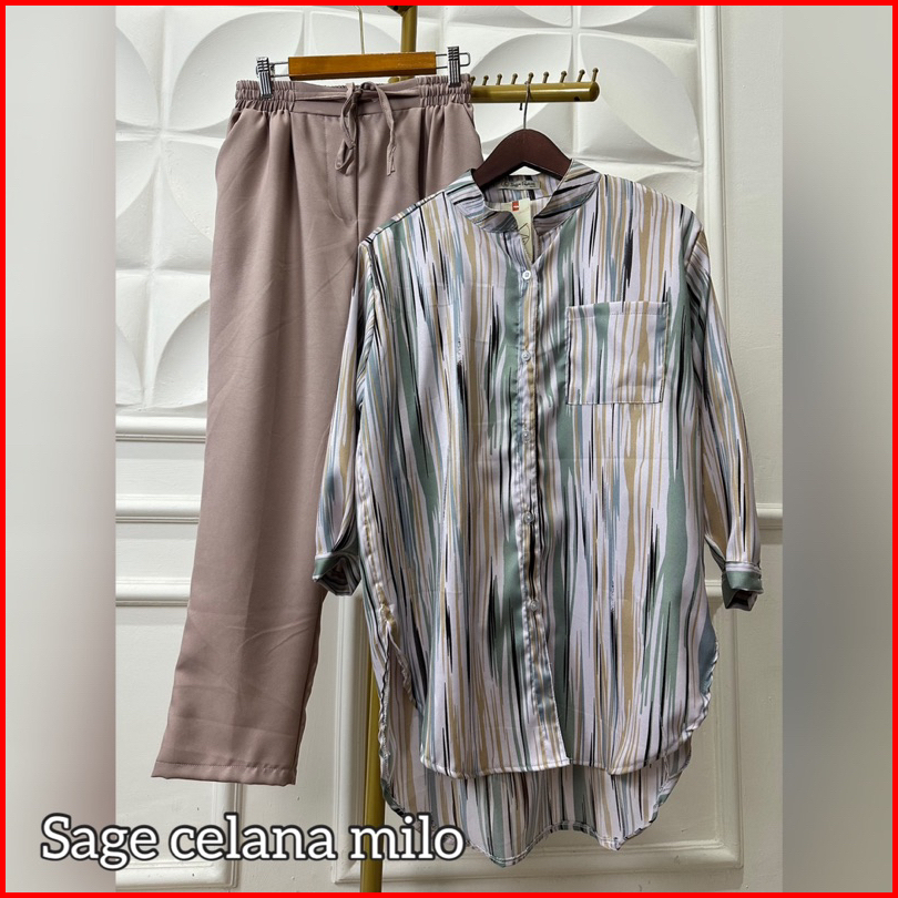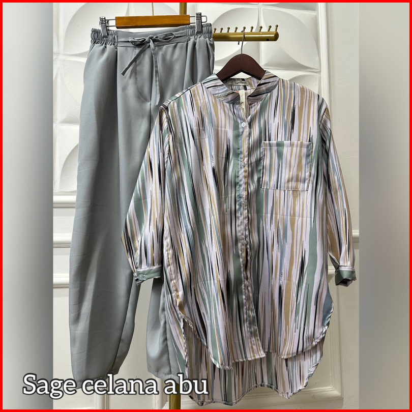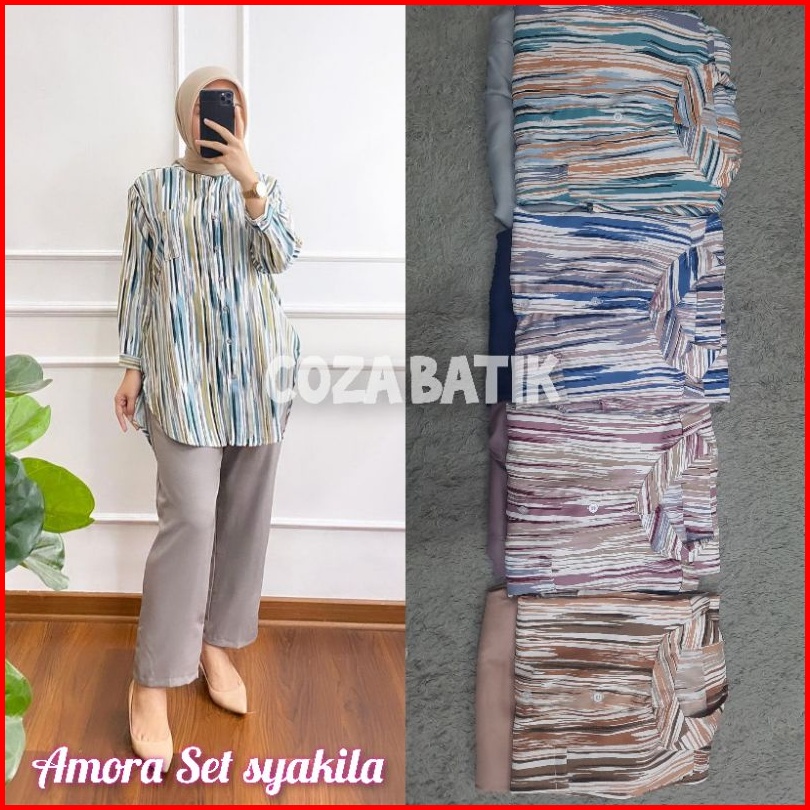 Coza Setelan Wanita Amora Set Kemeja Motif Salur Garis Lurik Abstrak Bahan Syakila Premium Size Standar Dan Jumbo Xxxl 1