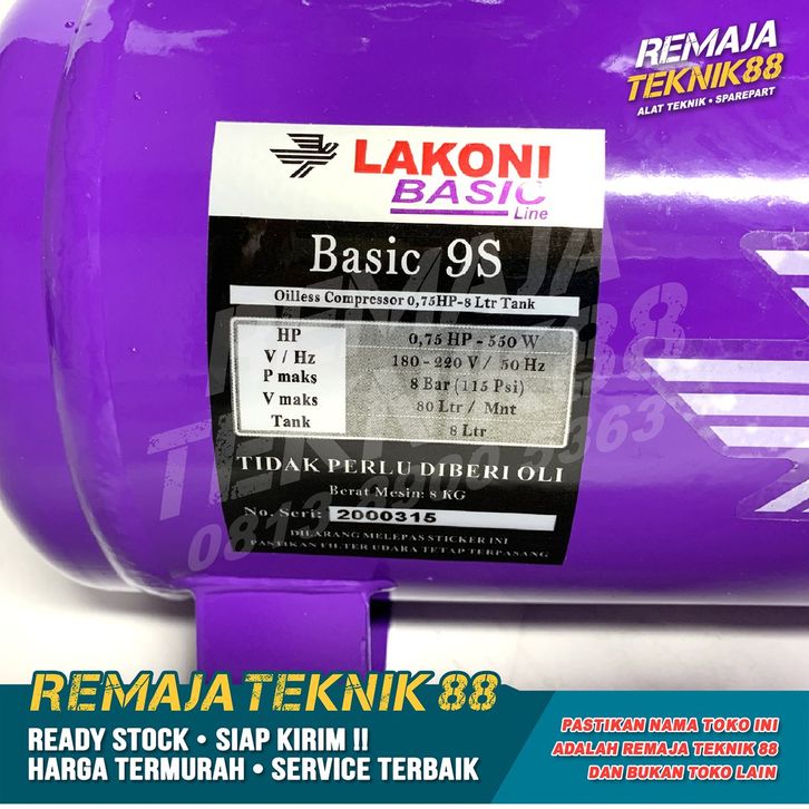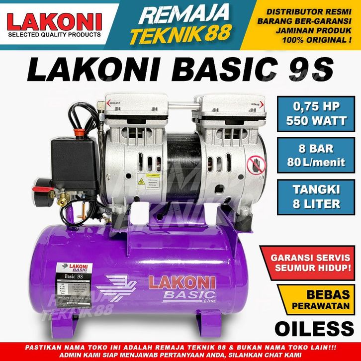 KOMPRESOR ANGIN LAKONI BASIC 9S / KOMPRESOR UDARA PORTABLE SILENT BASIC 9 S / 0,75HP