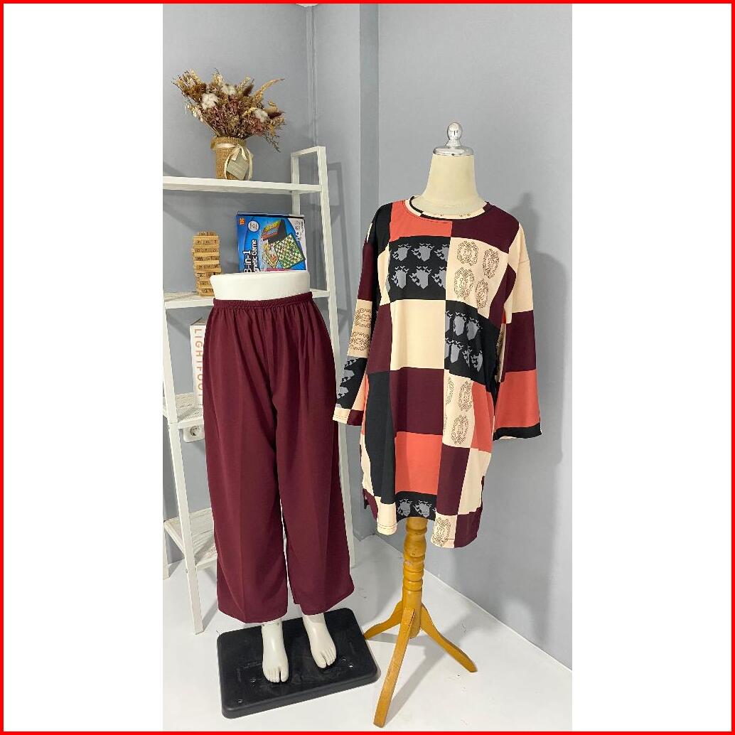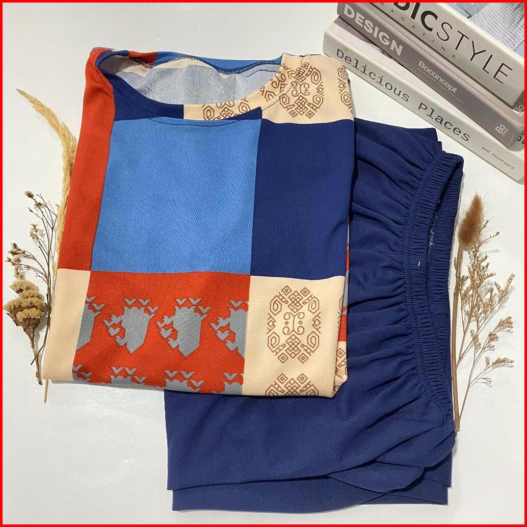 One Set Wanita Terbaru Fullprint Voxy Lengan 7 8 Setelan Wanita Atasan Dan Bawahan