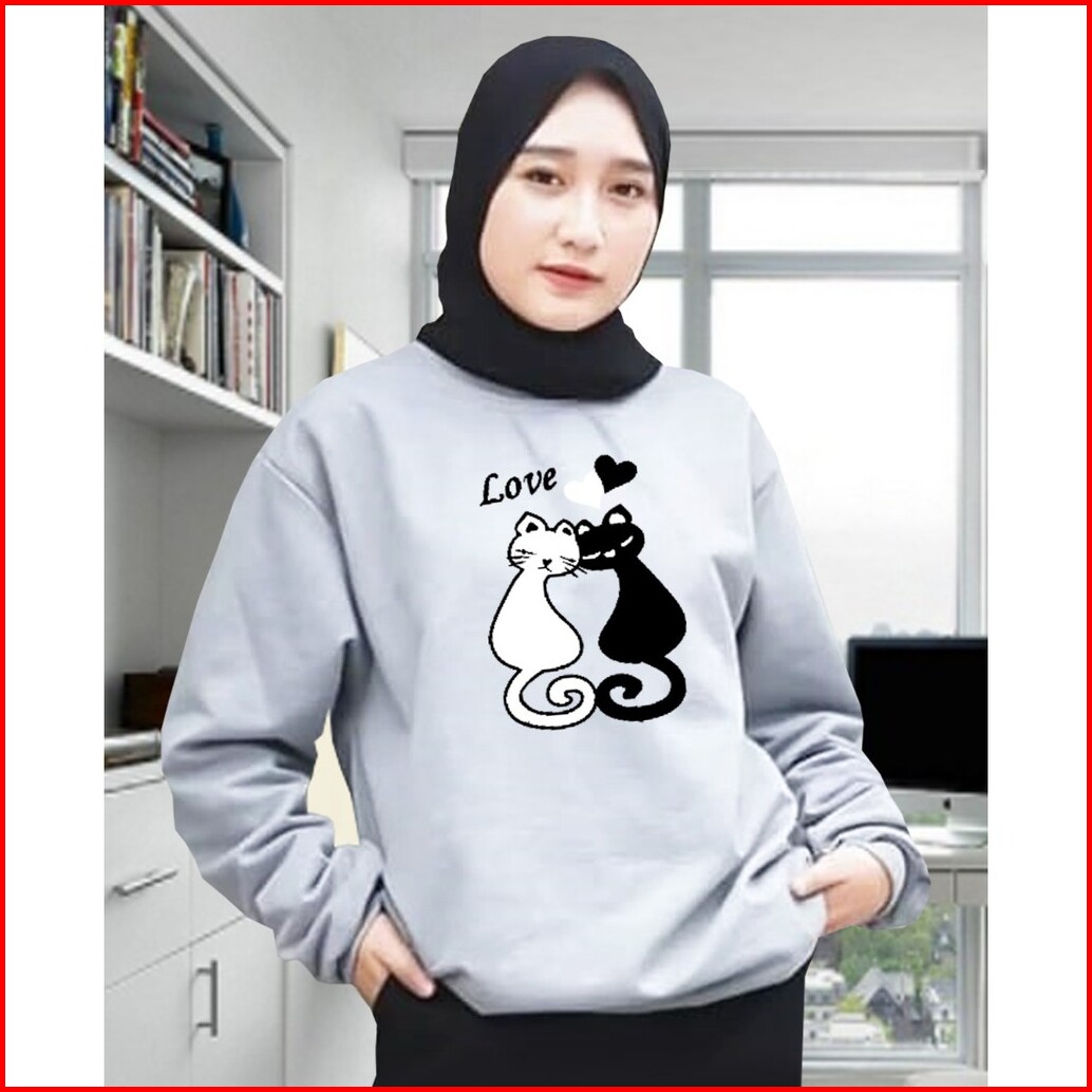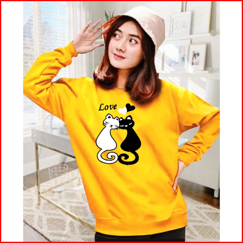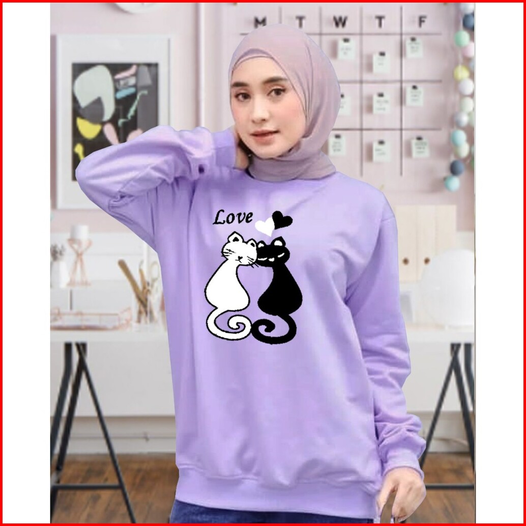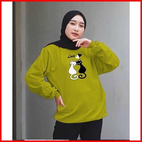 Kaos Lengan Panjang Meow 2 Kaos Sweatshirt Atasan Wanita Atasan Wanita Lengan Panjang