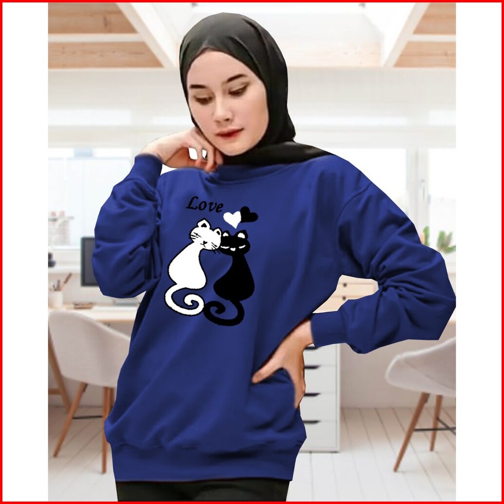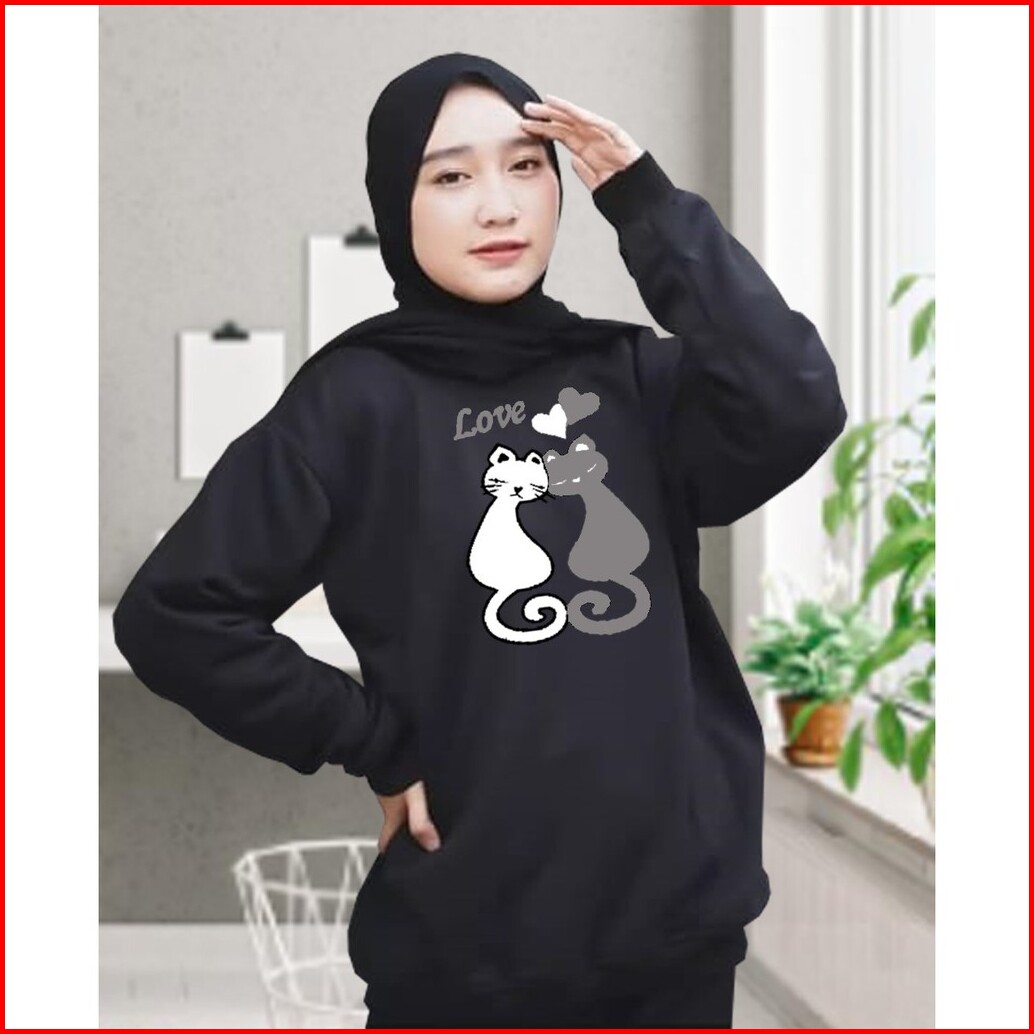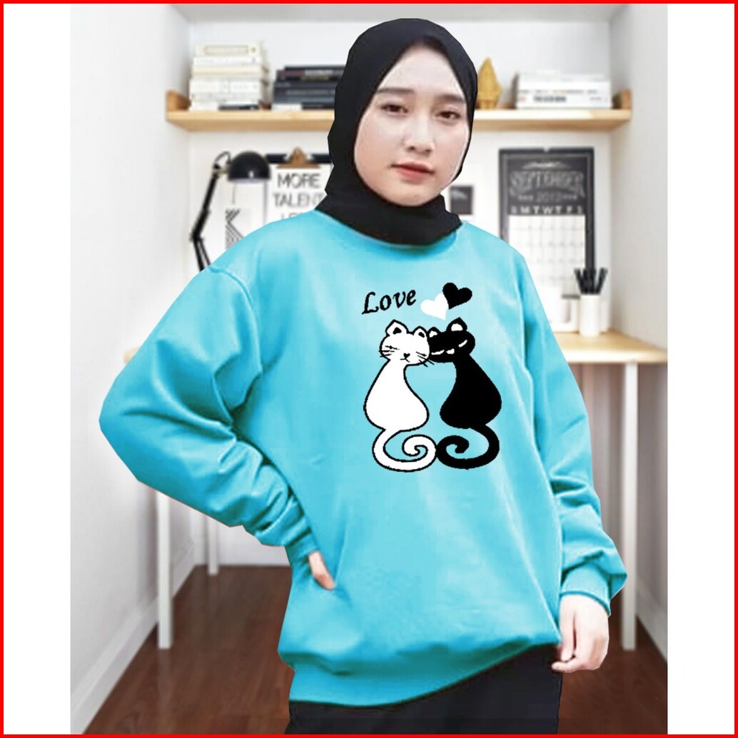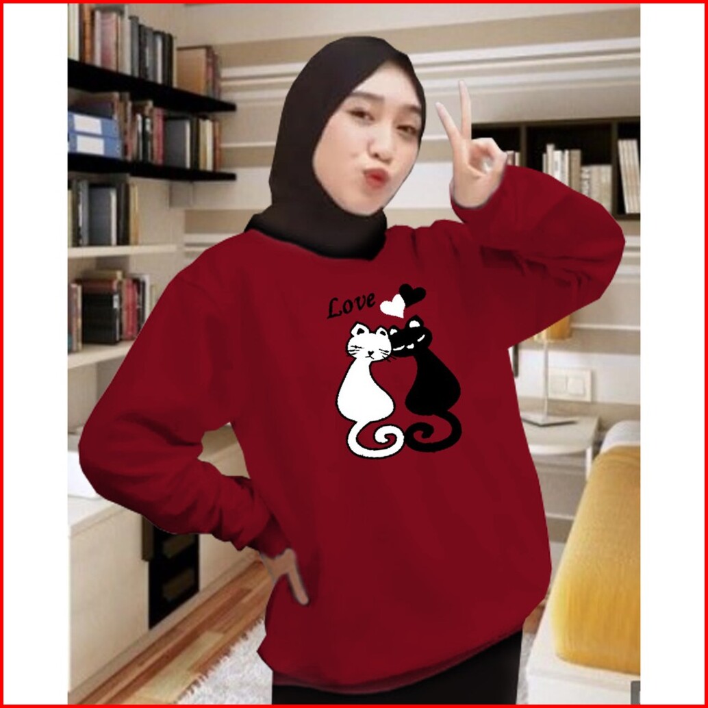 Kaos Lengan Panjang Meow 2 Kaos Sweatshirt Atasan Wanita Atasan Wanita Lengan Panjang