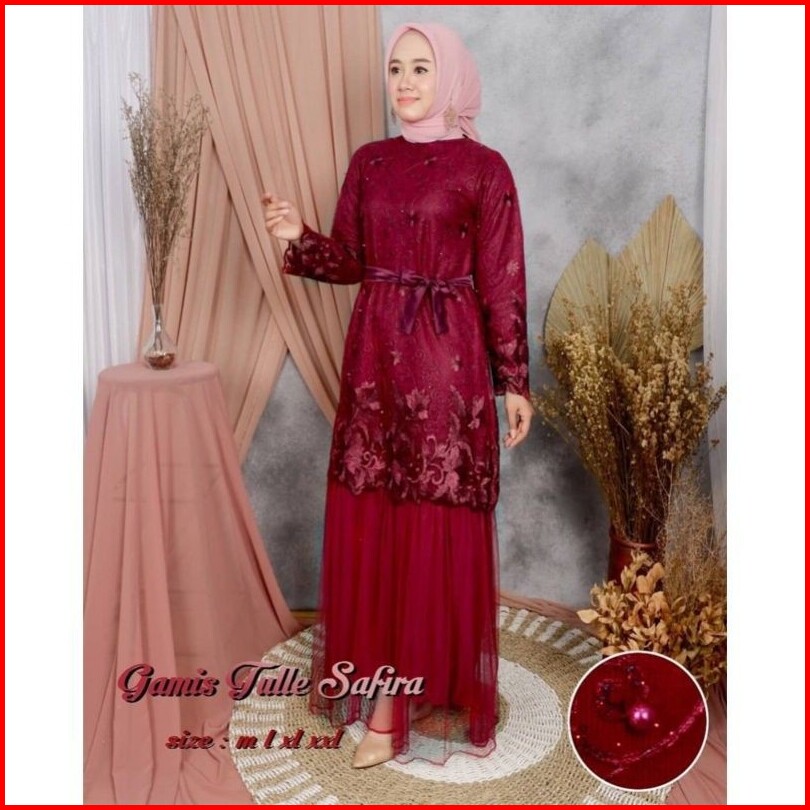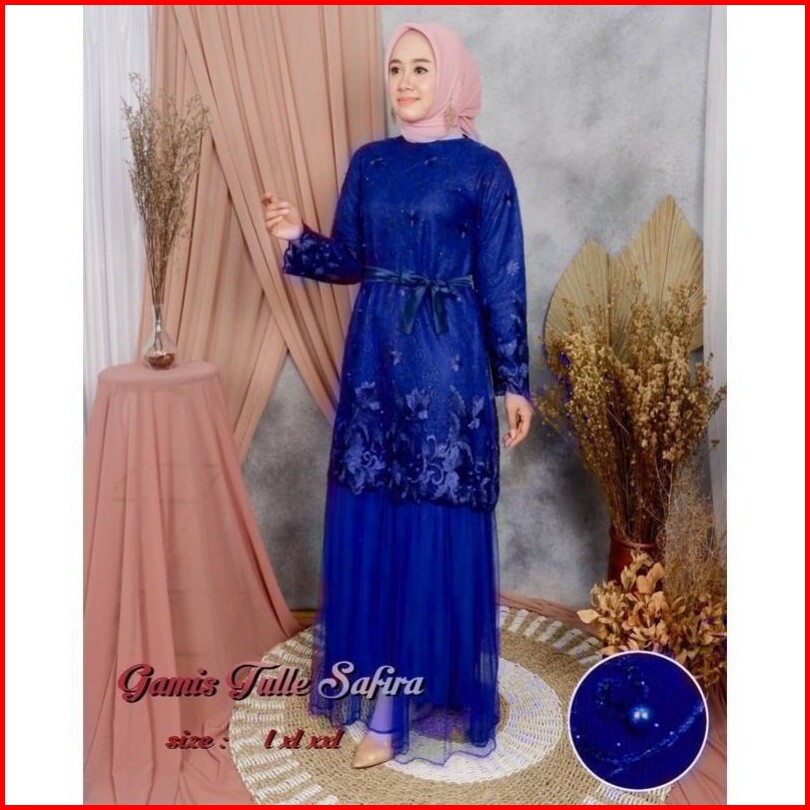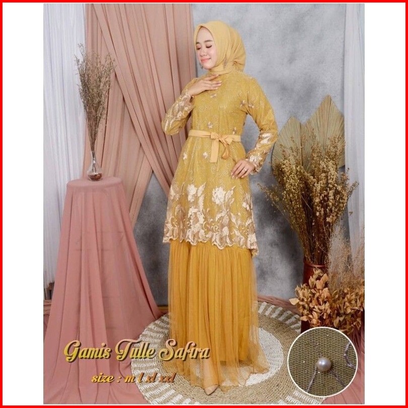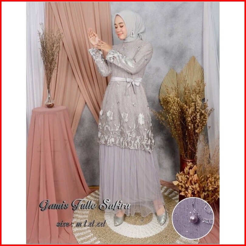 Size L Xl Xxl Gamis Muslim Safira Gamis Brukat Tulle Tile Premium Jumbo Murah Brokat