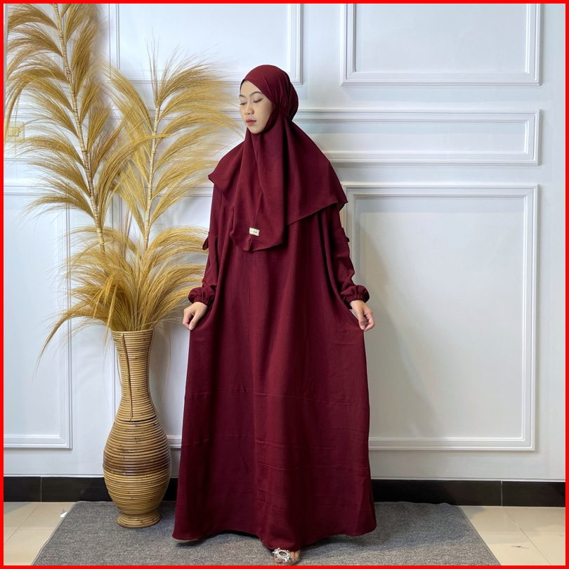 Dress Maryam Set Gamis Jilbab Crinkle Jumbo Busui