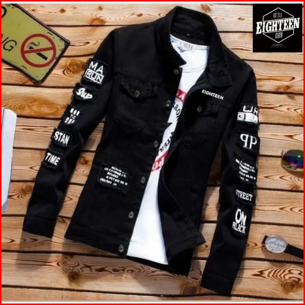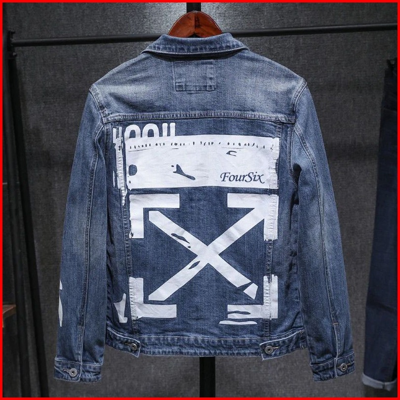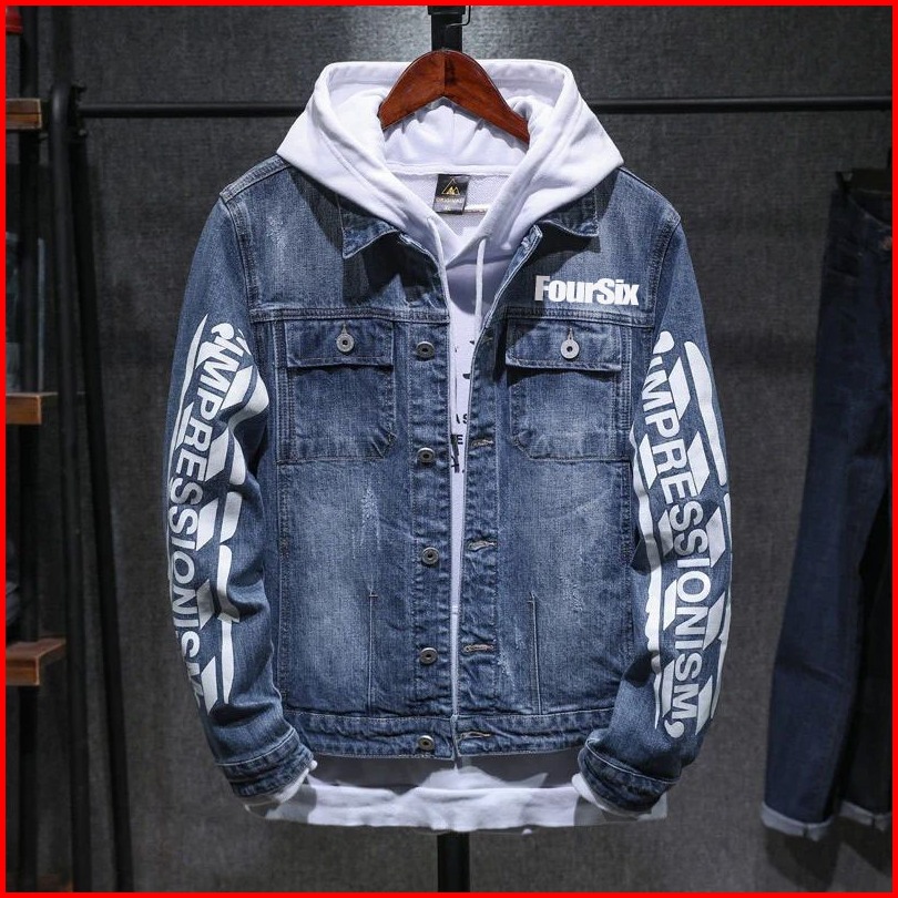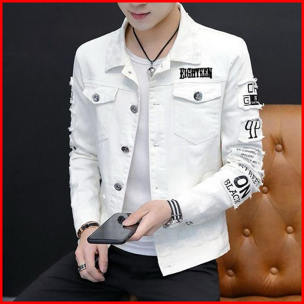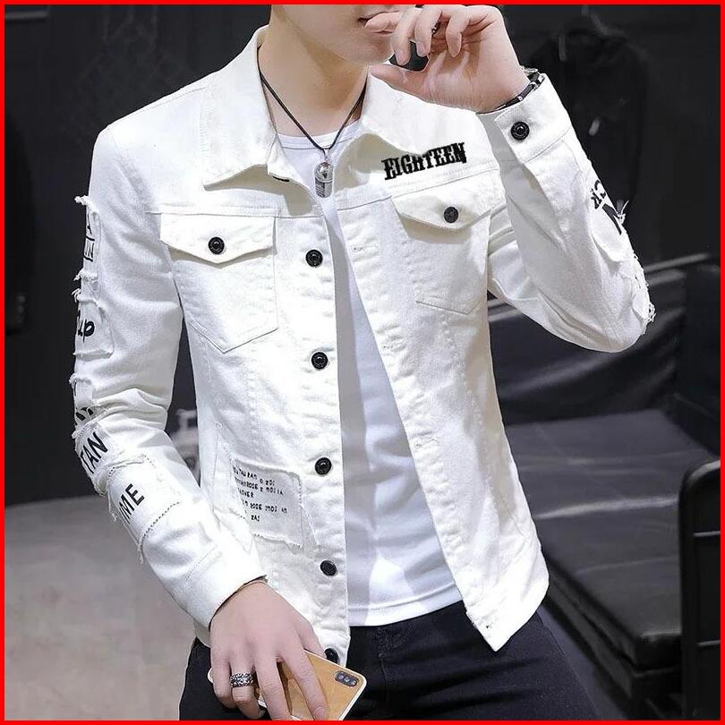 Mm Store Jaket Jeans Cowo Casual Pakaian Pria Bordiran Putih Egthen Jaket Denim Ukuran M L Xl Xxl