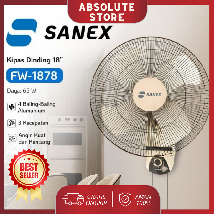 GRATIS ONGKIR - Sanex Kipas Angin Dinding FW 1878 / 1879 Wall Fan 18 inch TORNADO SNI Baling Baling Besi