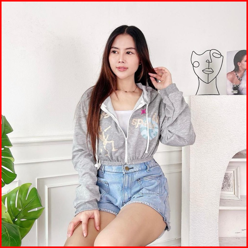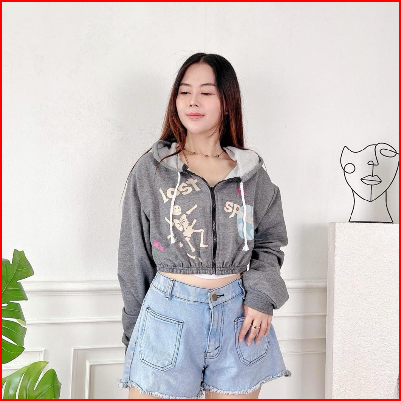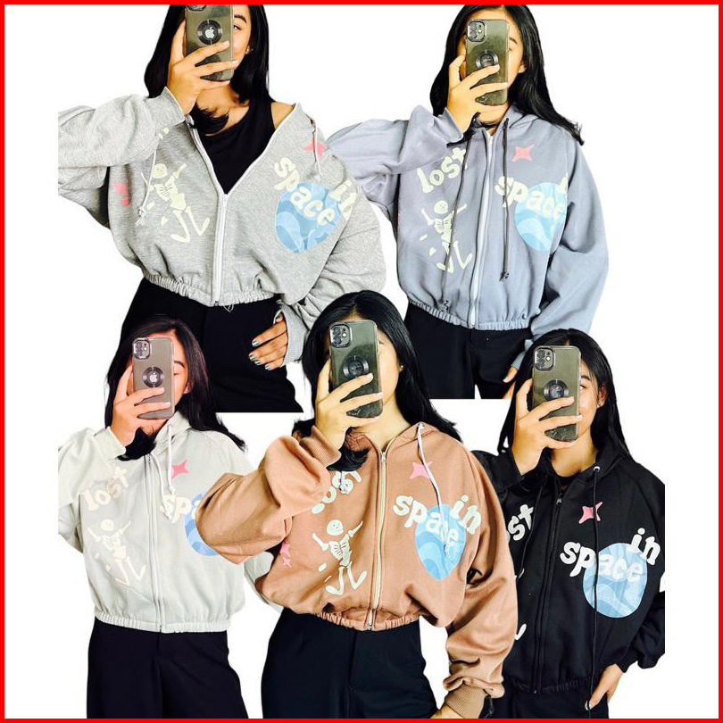 Jaket Hoodie Crop Fleece Space In Lost Ld90 P36