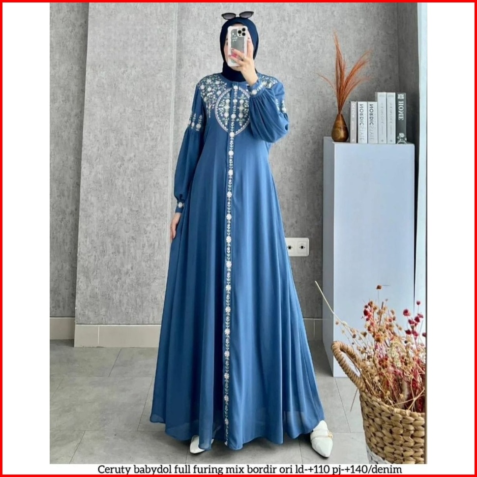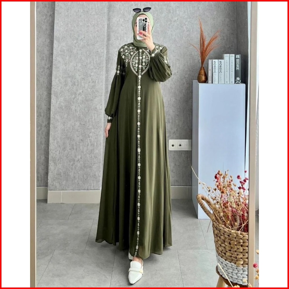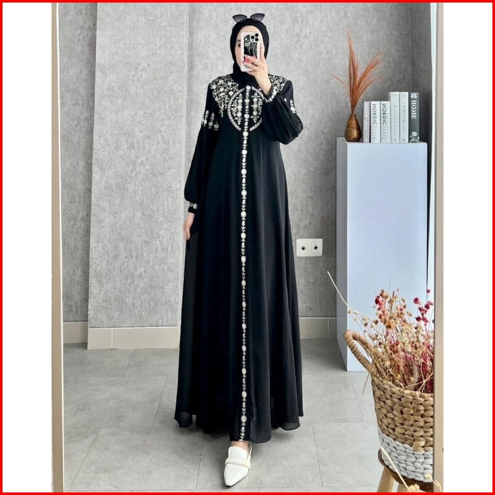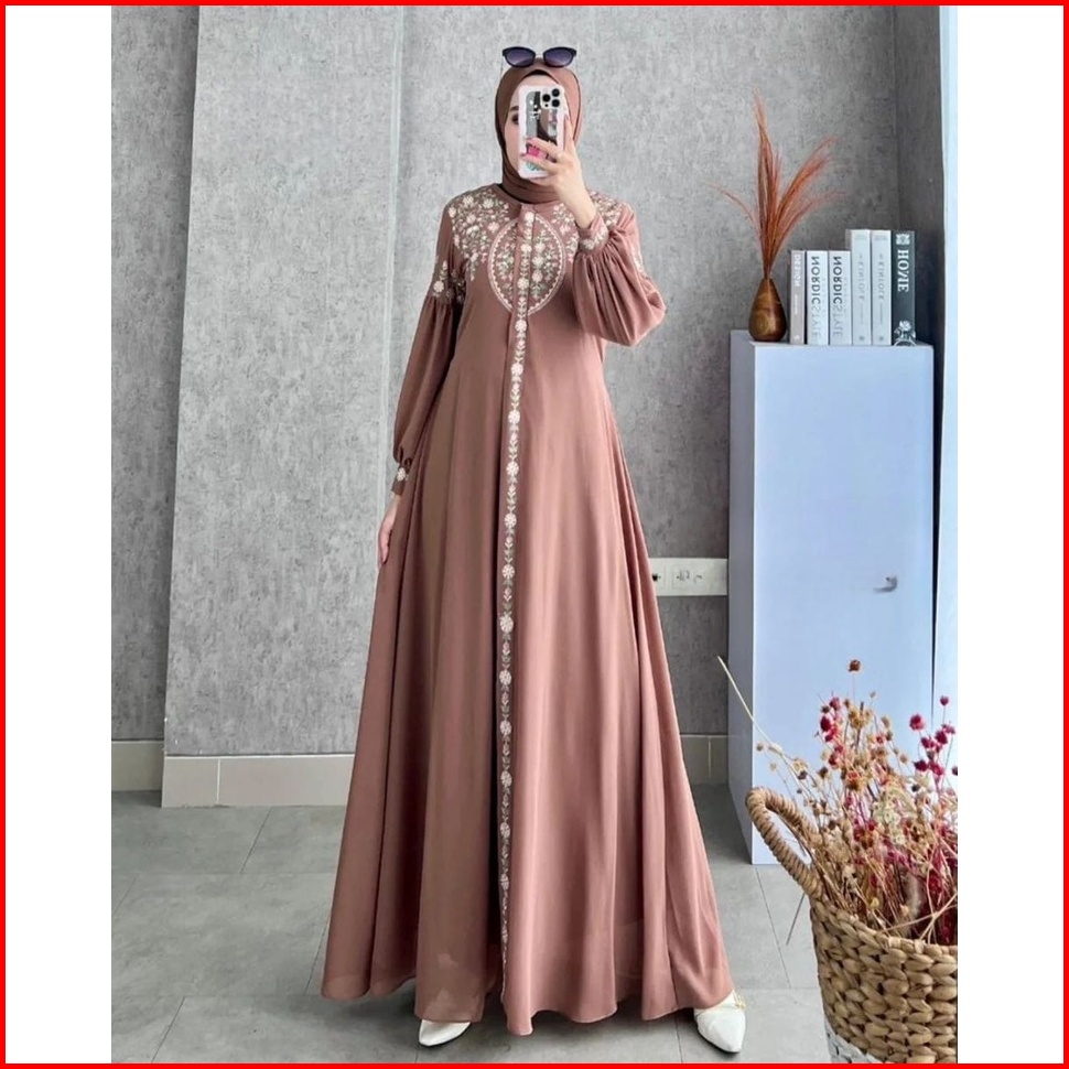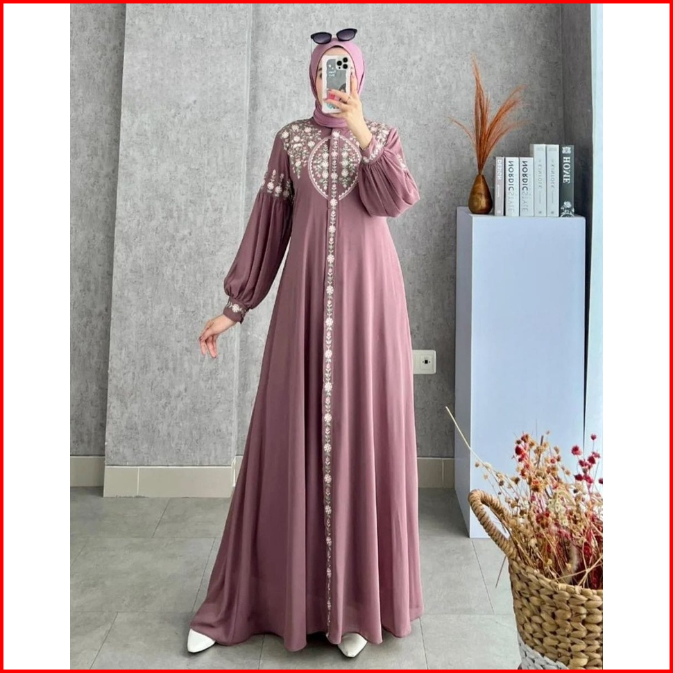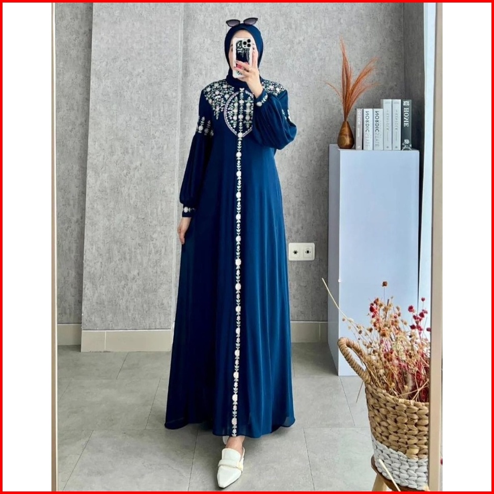 Diandra Dress Gamis Maxy Bordir Premium Muslim Wanita Fit To Xl L Natasya Maxi Turkey Pesta Kondangan Kekinian