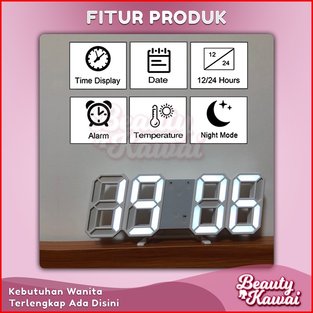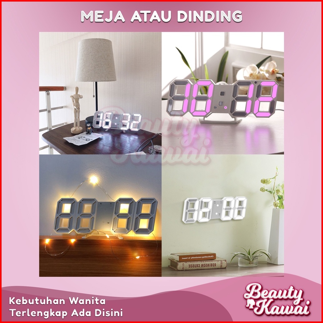 Jam Digital Led 3d Dinding Meja Alarm Suhu Tanggal Usb Aesthetic Clock Tempel
