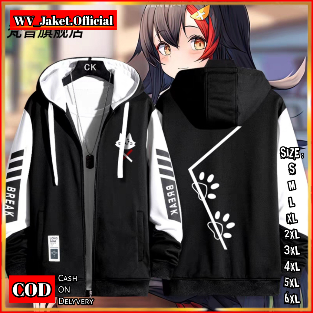 Jaket Hoodie Zipper Ookami Mio Jaket Fleece Oversize Pria Wanita Unisex S-6xl Korean Fashion Style