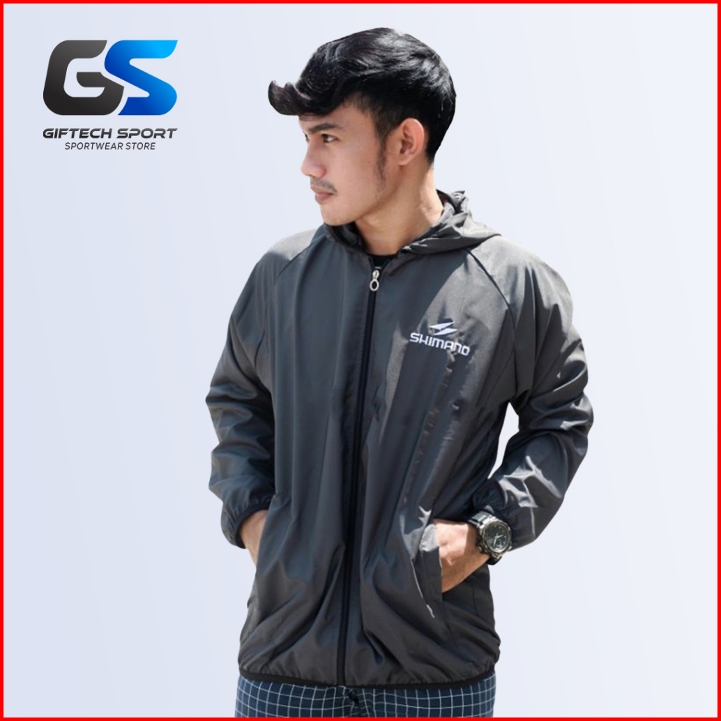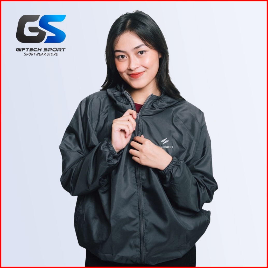 Jaket Parasut Shimano Waterproof Jacket Sauna Parasit Hoodie Olahraga Running Jogging Pria Wanita