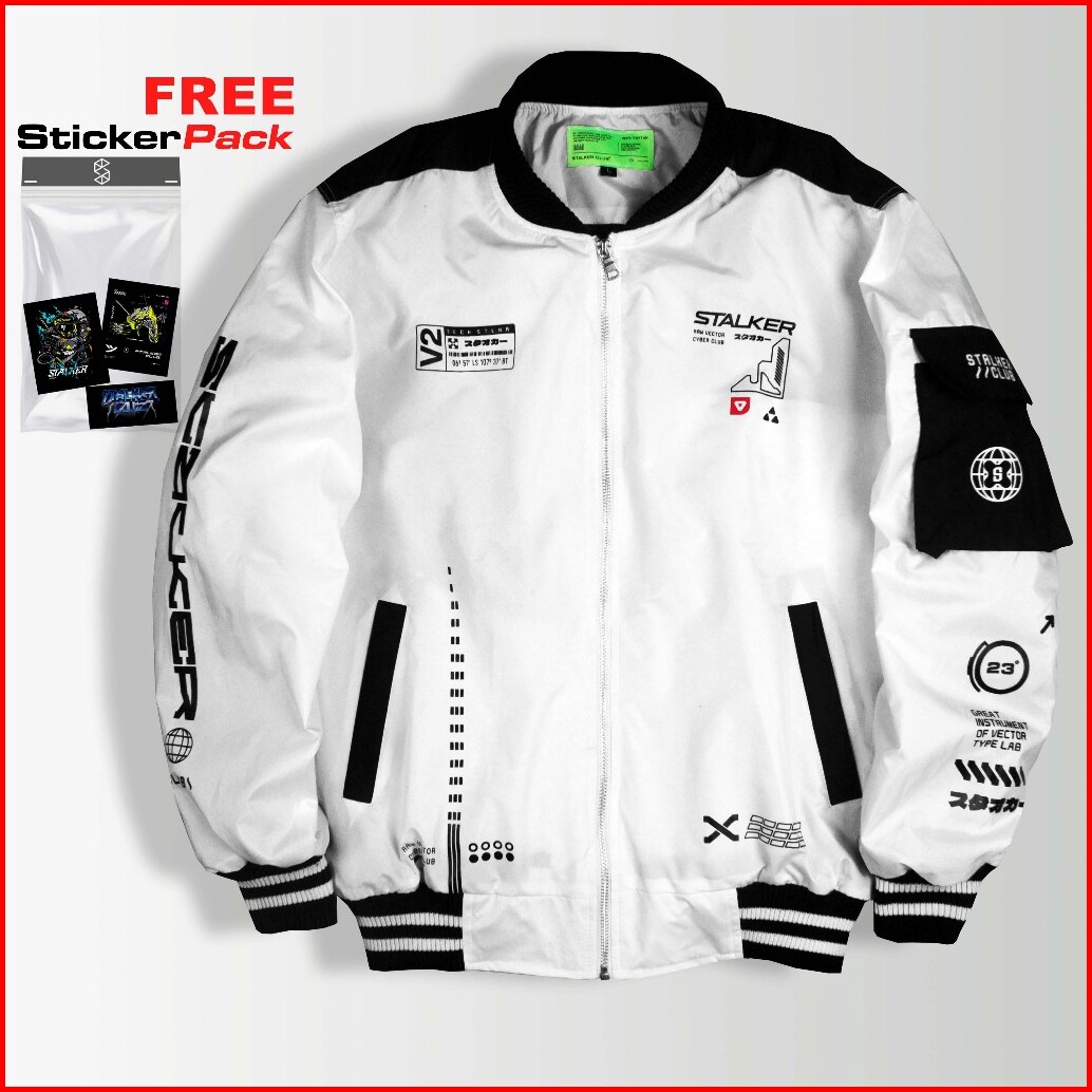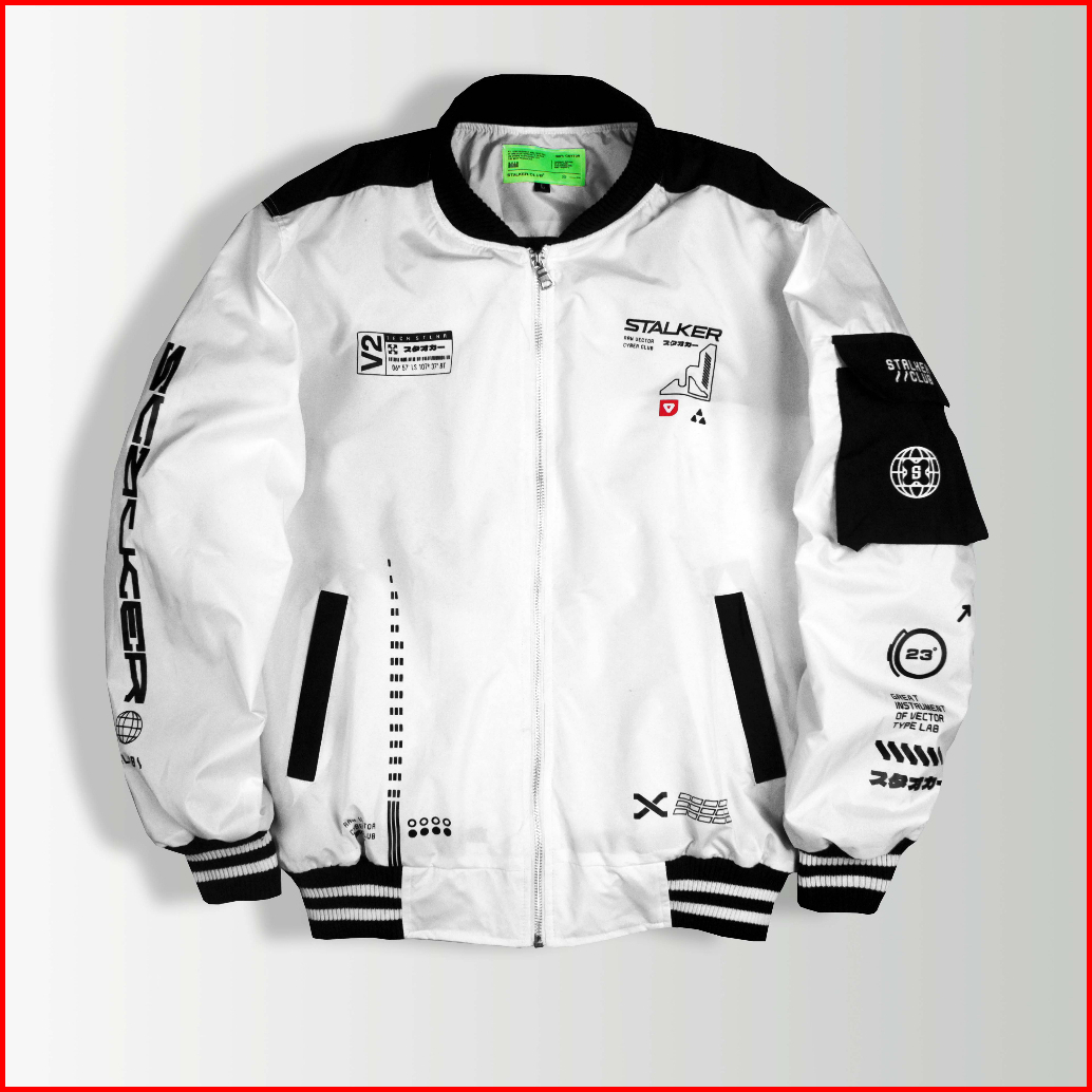 Stalker Jaket Bomber Putih - Great Instrument White Anti Air Windbreaker