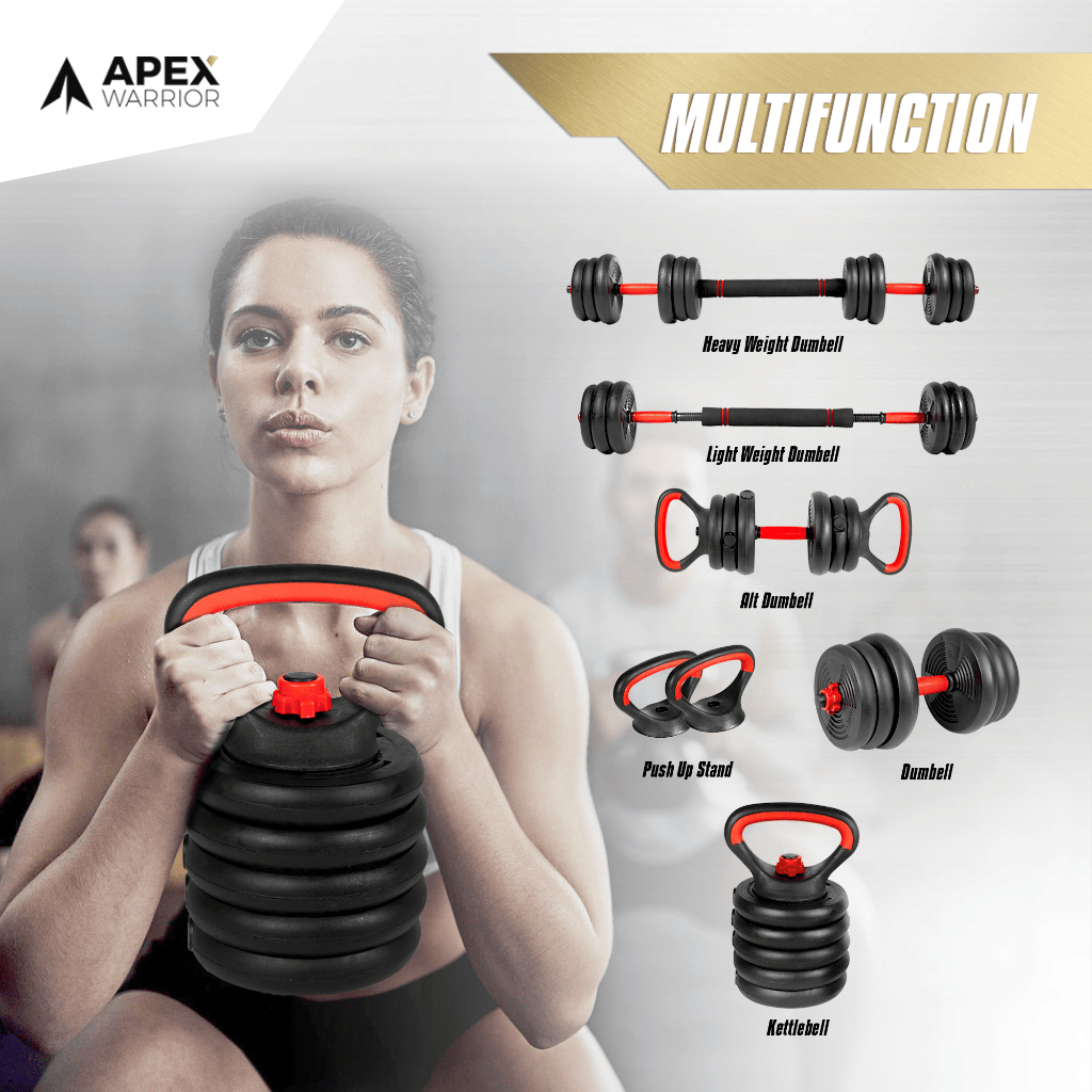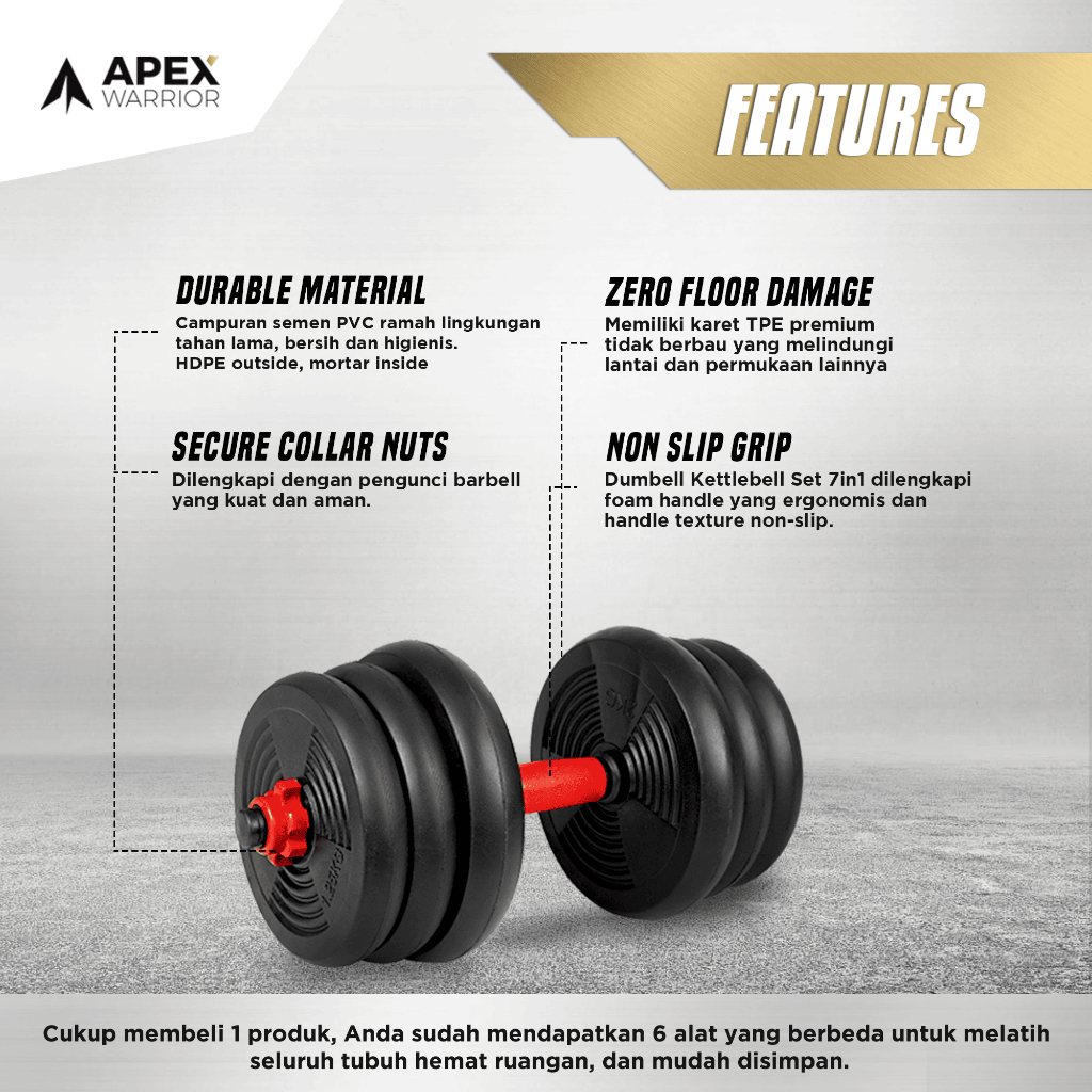 Apex Warrior Dumbbell Kettlebell Barbell 7in1 Plat Beban Multifungsi