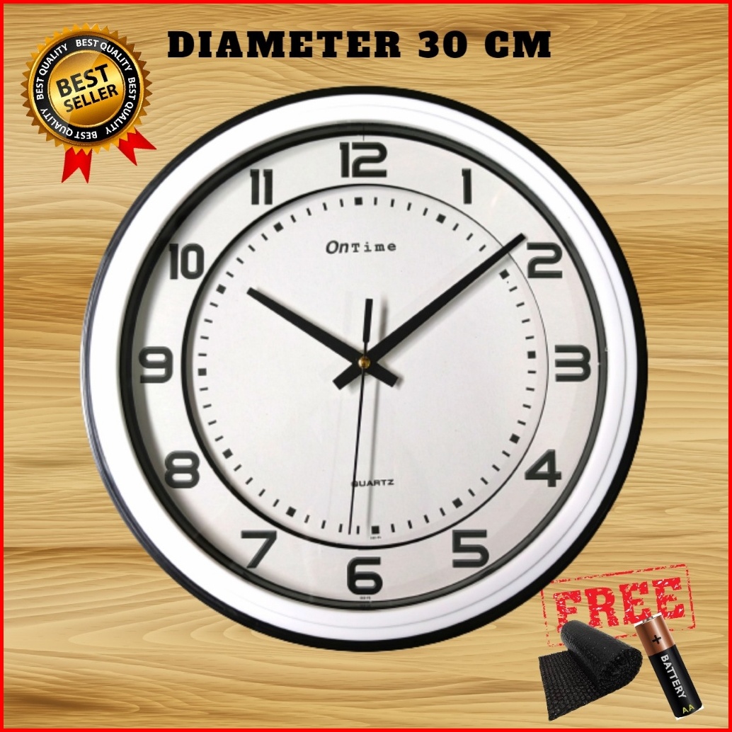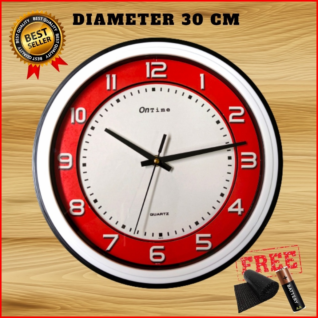 Jam Dinding Besar Murah Polos Minimalis Putih Hitam Merah Biru Diameter 30cm Ontime 565