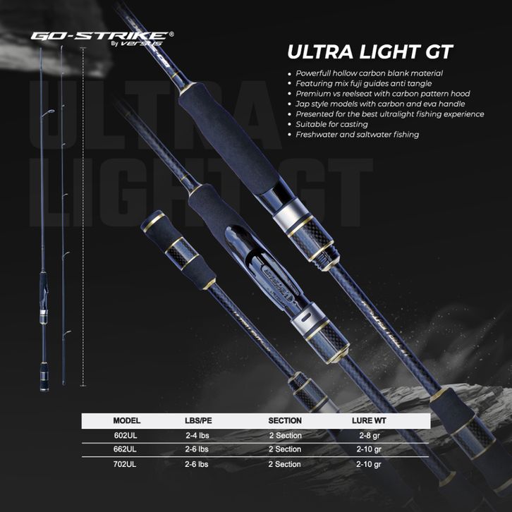 Joran Pancing Gostrike Ultra Light GT – Fuji Mix uide – Hollow Carbon – 2 Section + FREE PARALON