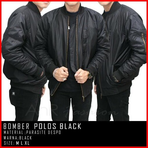 Jaket Pilot Bomber Polos Pria Cowok - Hitam Black