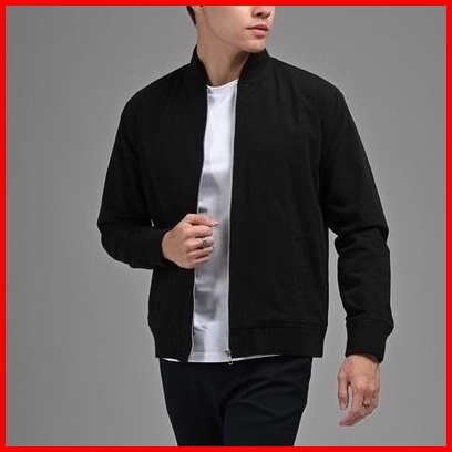 Jaket Boomber Bahan Baby Kanvas Reseleting Polosan Kasual Unisex Atasan Fashion Cowok