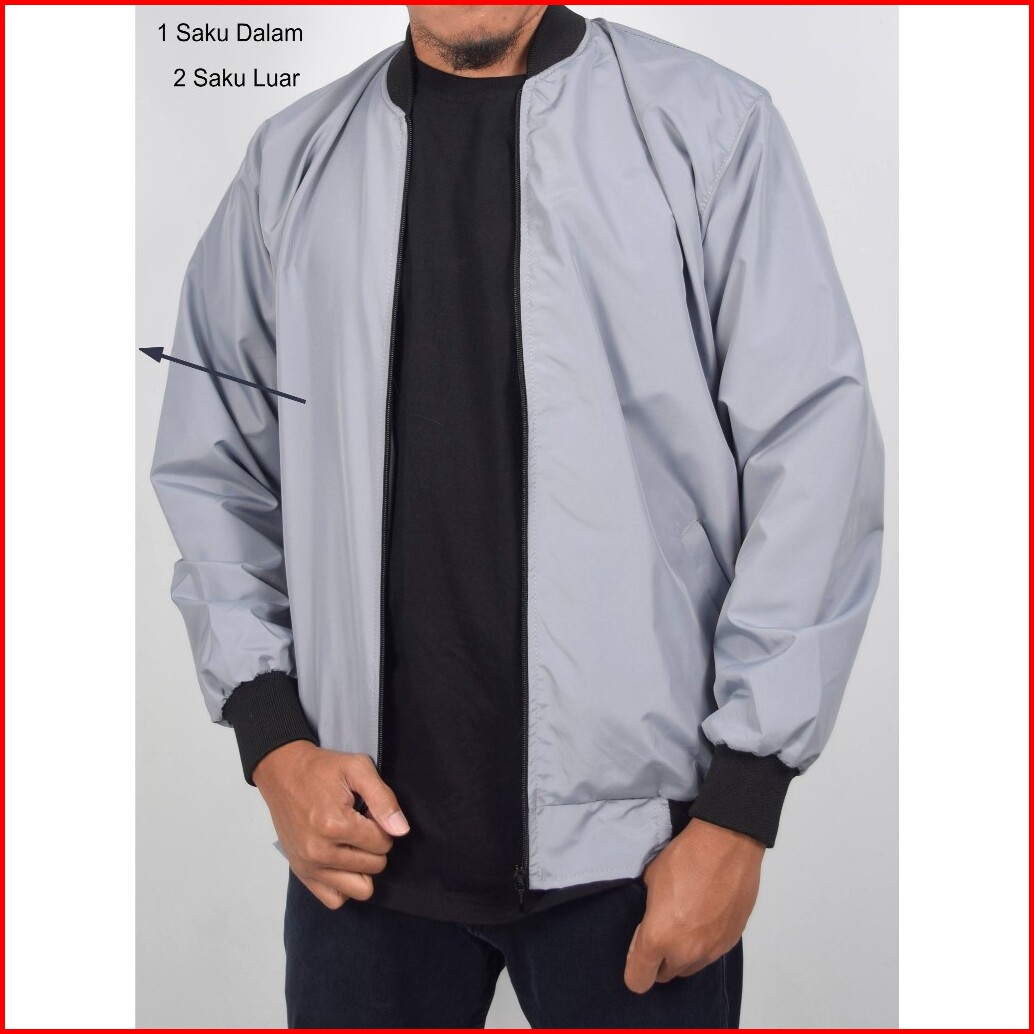 Jaket Bomber Polos Waterproof Parasut Pria Wanita Jumbo Anti Air Bahan Premium Size M L Xl Xxl
