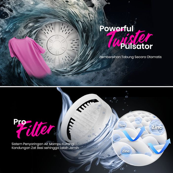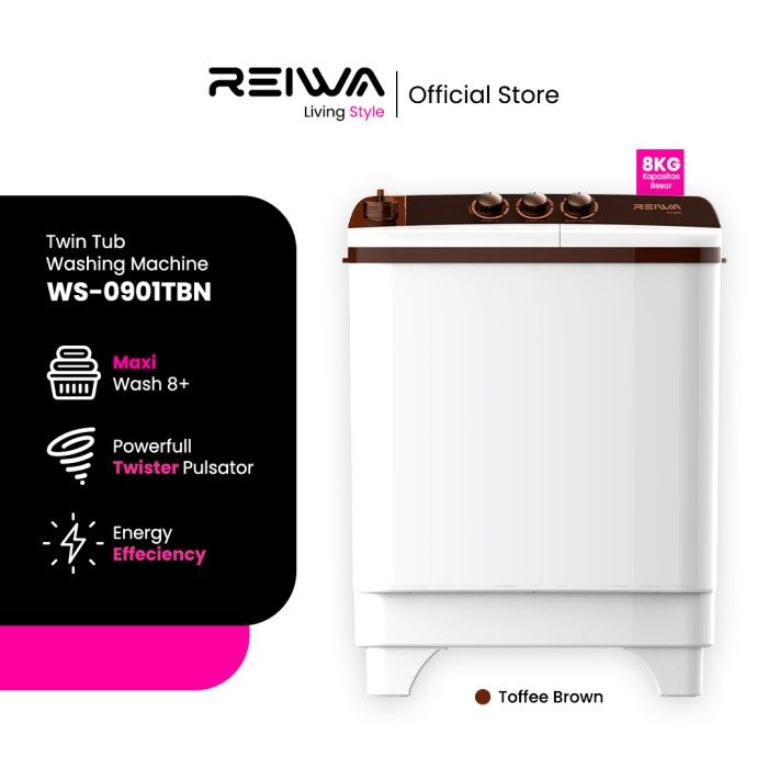 mesin cuci 2 tabung 10 kg Reiwa Mesin Cuci 2 Tabung 8Kg WS-0901TBN Toffee Brown