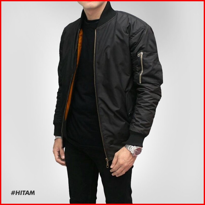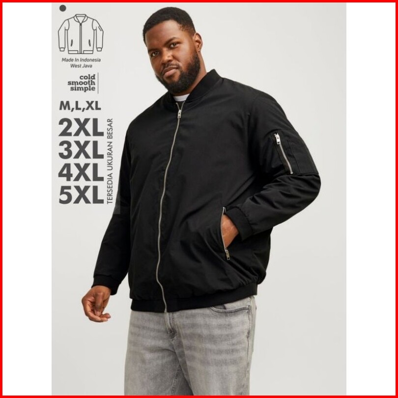 Jaket Bomber Pria Ukuran Jumbo 2xl5xl Polos Hitam Basic Bahan Parasut Tebal Adem