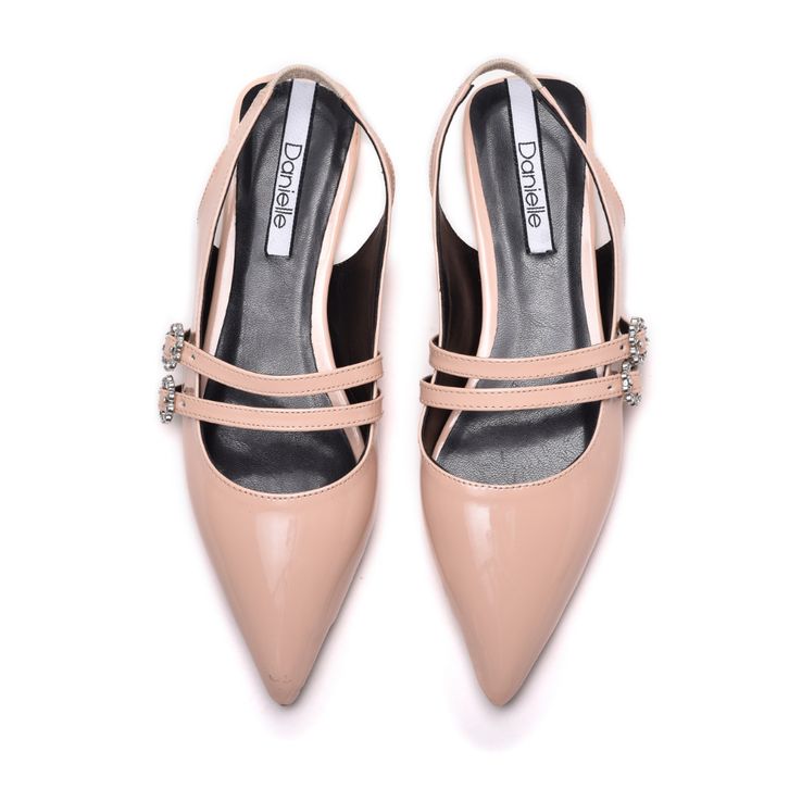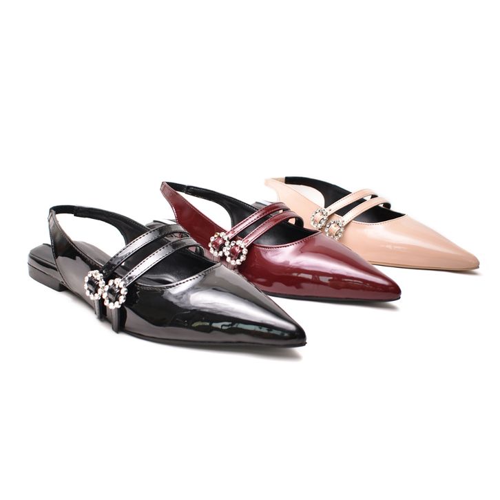 DANIELLE HELENA Slingback Flat Mules 1cm Bros Berlian no Sandal Flat Sandal Mules Sandal Kasual Wanita Sandal Tali