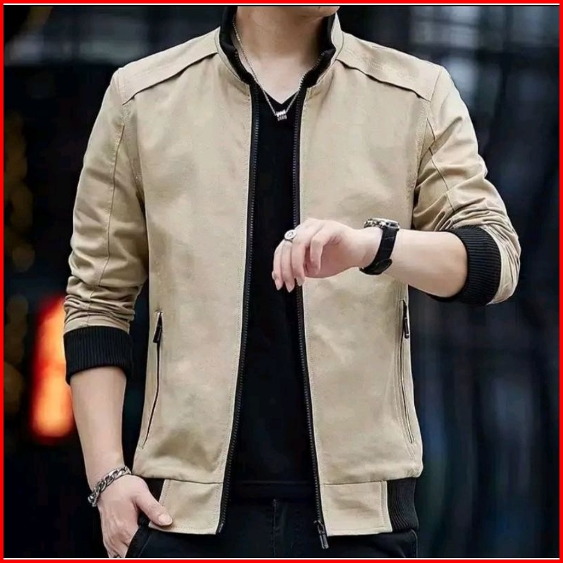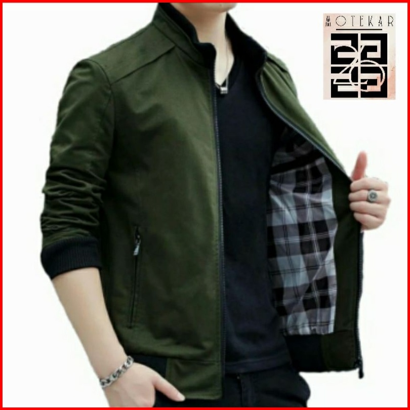 Motekar26 Jaket Katun Bomber Pria Jaket Casual Pria Jaket Elegan Jaket Bomber Deleup