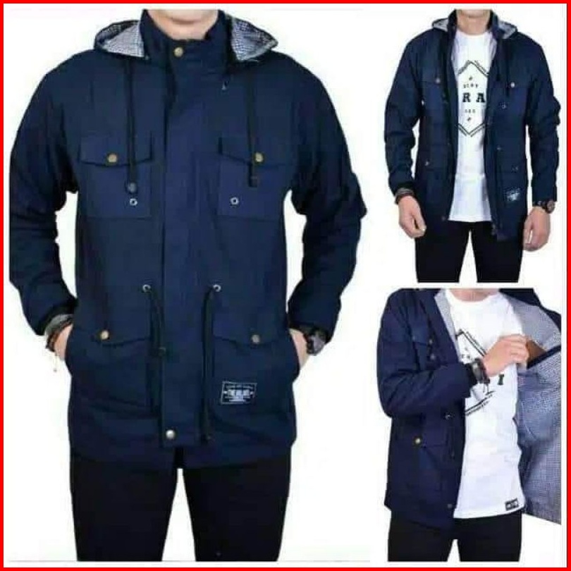 Jacket Pria Parka Casvas Polos Kombinasi Kualiatas Premium