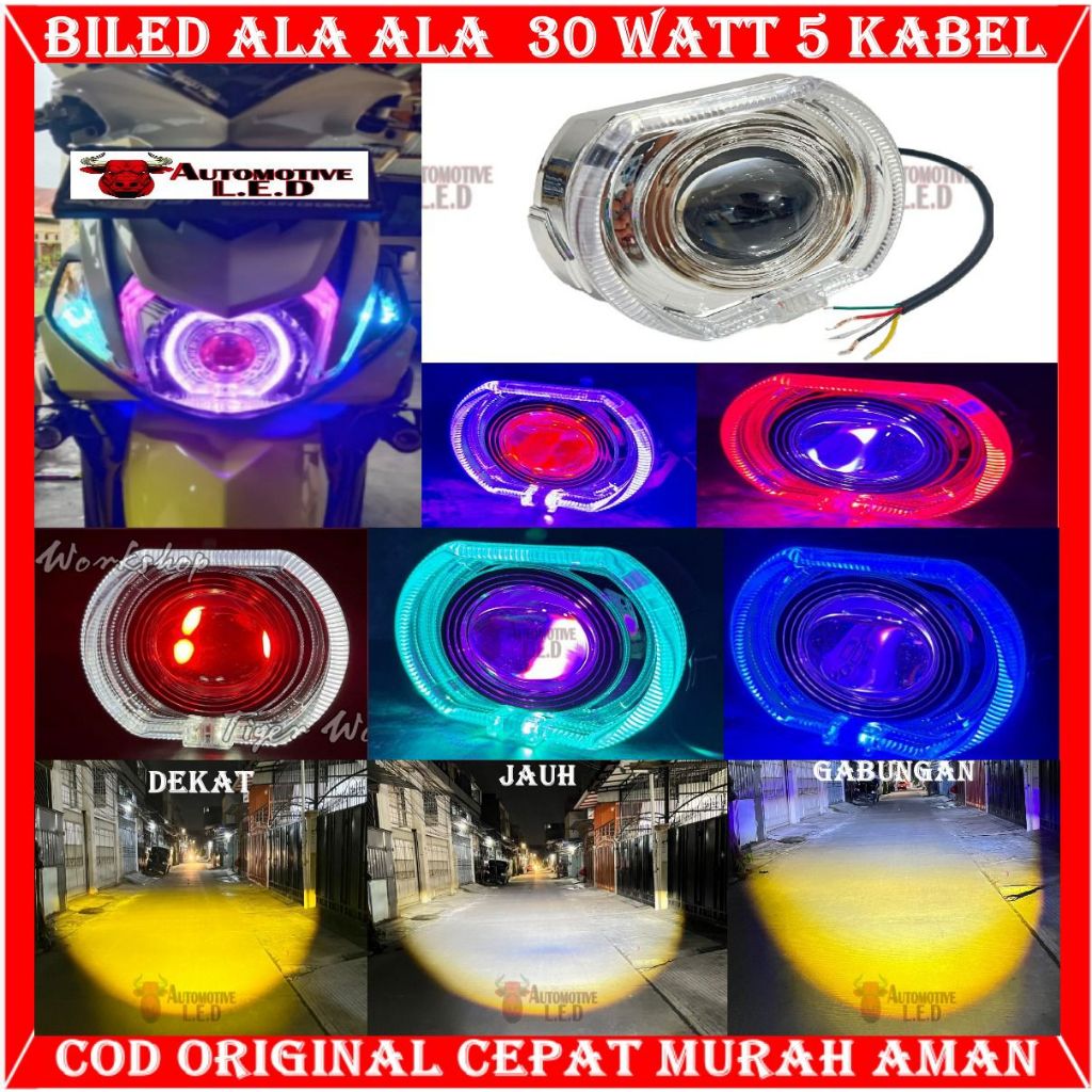 ORIGINAL BILED ALA ALA NEW PROJIE BILED 4.5 INCHI CAHAYA LASER CUT OFF JAUH DEKAT 30WATT PLUS DEVIL MERAH FULL