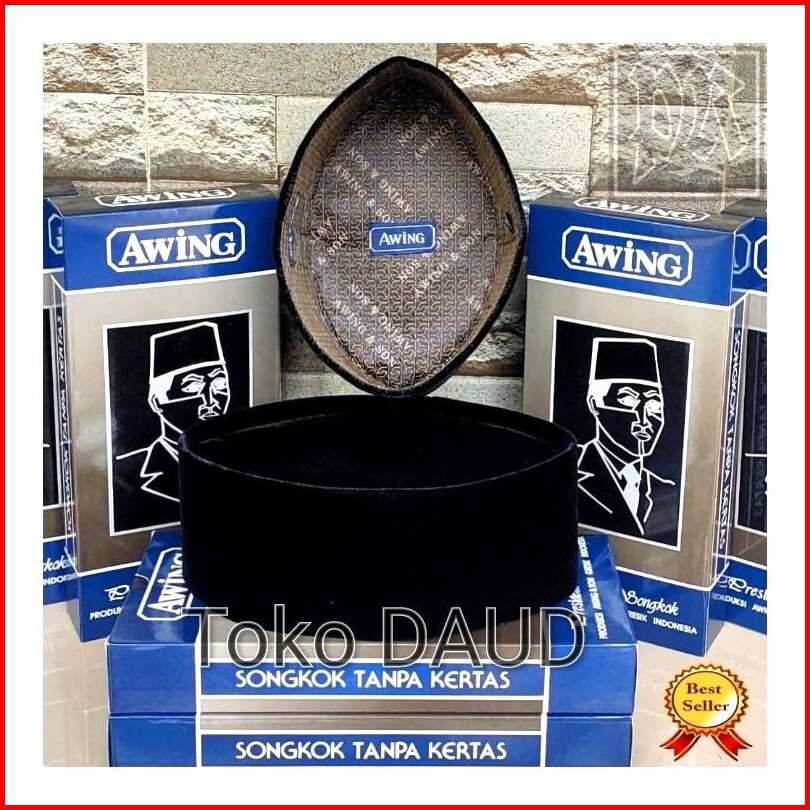 Peci Songkok Awing President Original 100 Tanpa Kertas Kopiah Hitam Polos