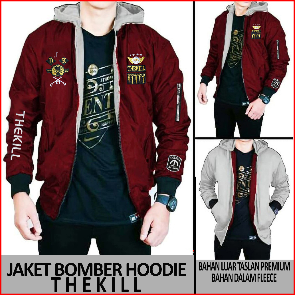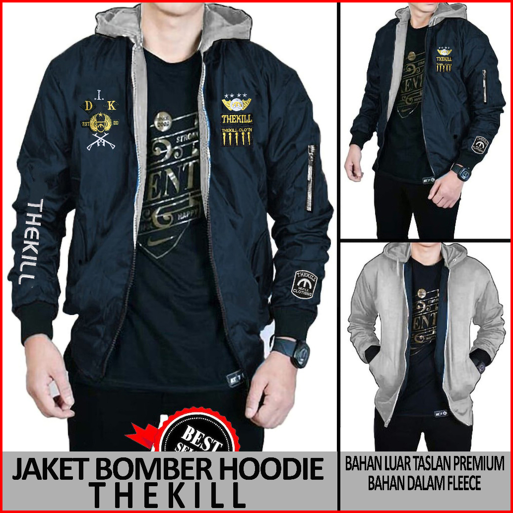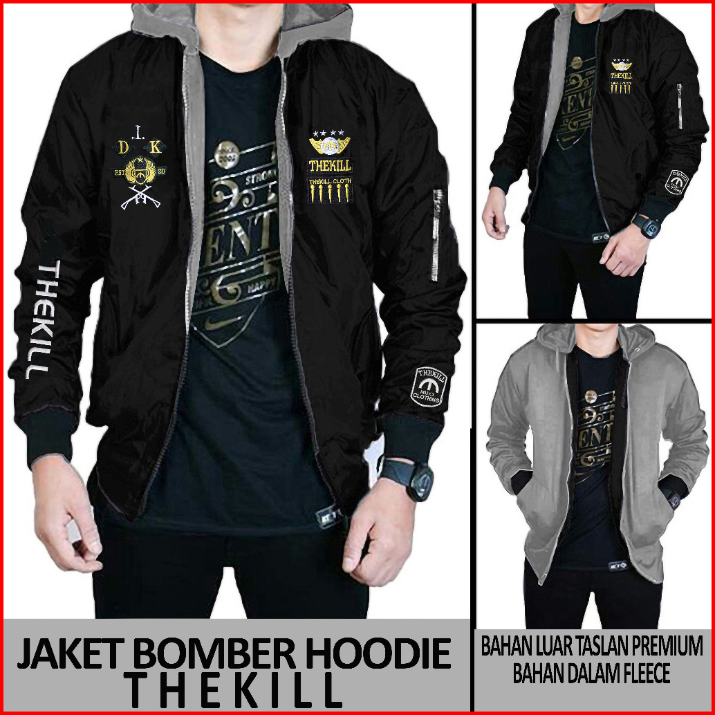 Jaket Bomber Hoodie Thekill Bolak Balik Pria Dan Wanita