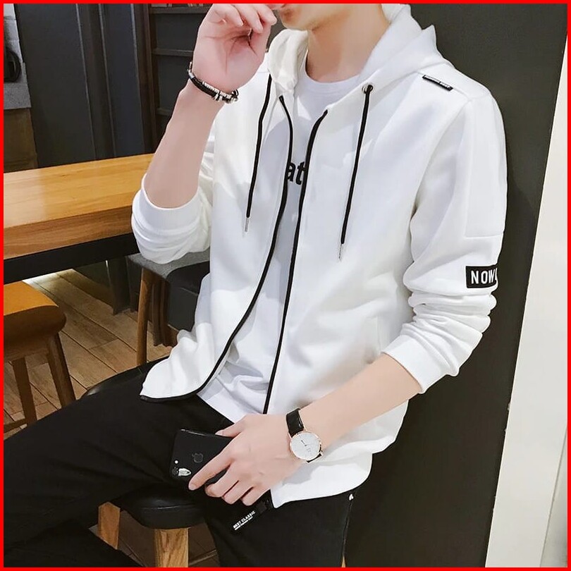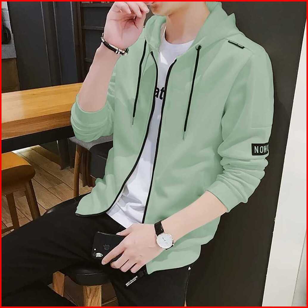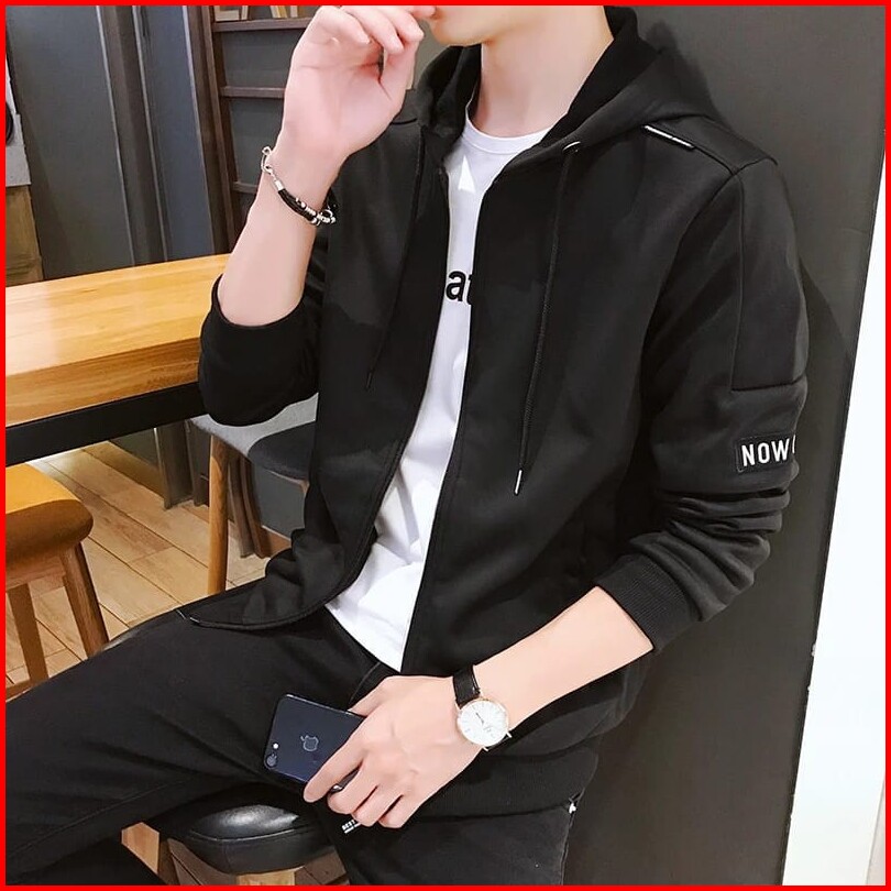 Tototashop.jaket Hoodie Pria Now Ao Bahan Fleece Tebal Sleting Ada Kantong Kiri Kanan.