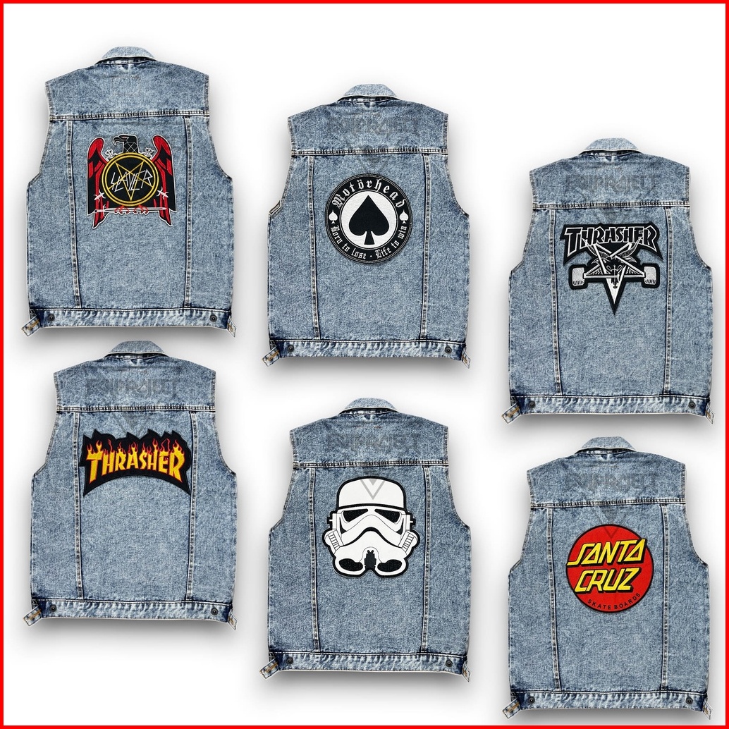 Jaket Rompi Pria Motif Band Dan Motor Custem Aksesoris Sudah Di Jahit Desain Casual Yang Menambah Kelakian 99 9 Jaket Je
